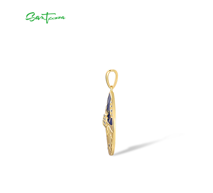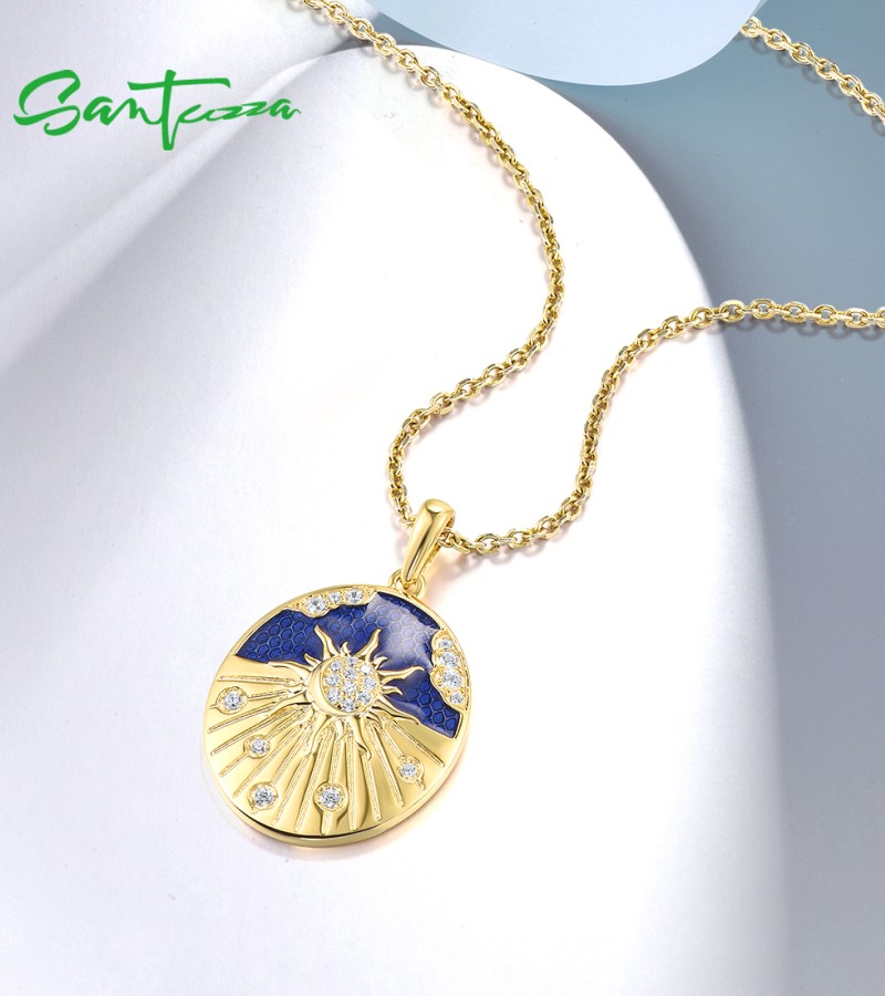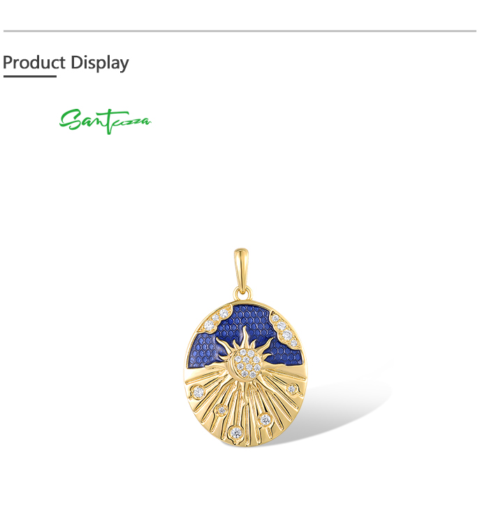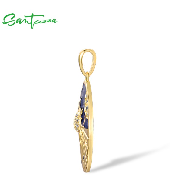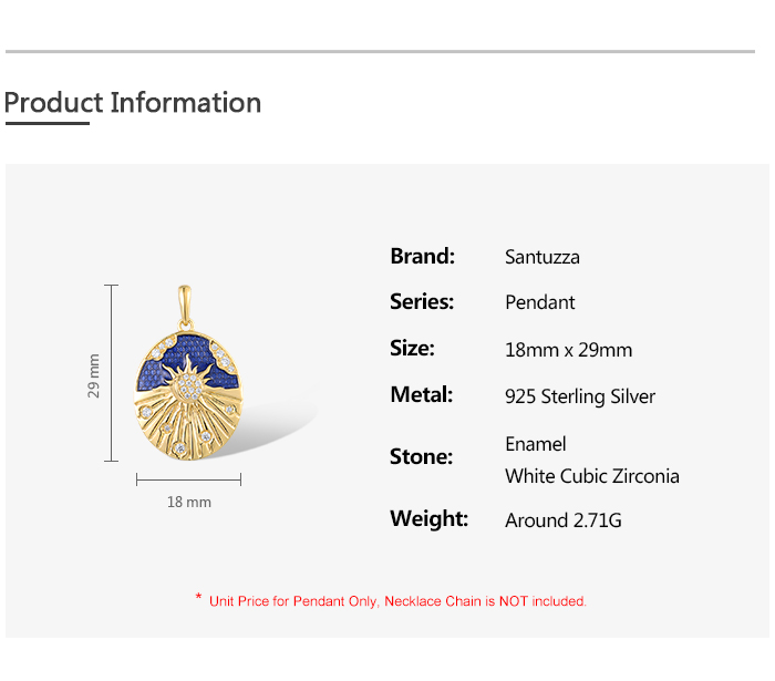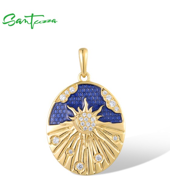 SANTUZZA 925 Sterling Silver Pendant White CZ Enamel Blue Sky&Sun Jewelry