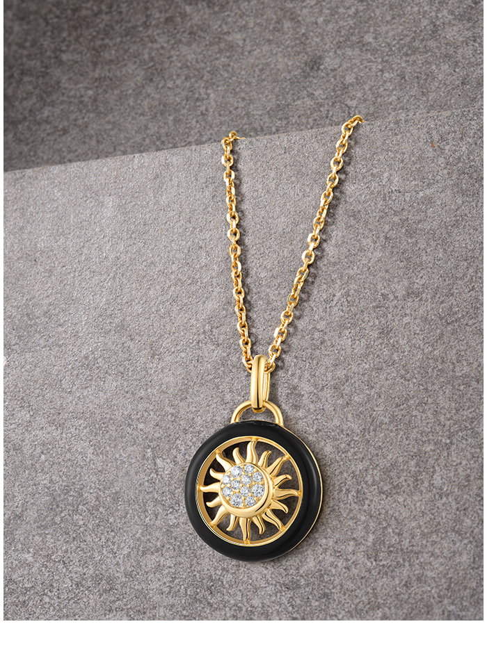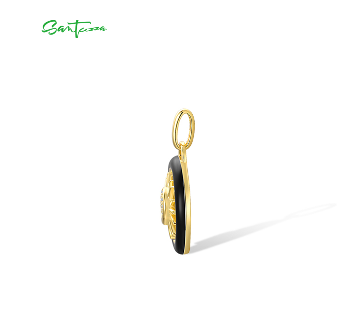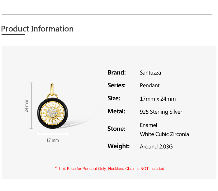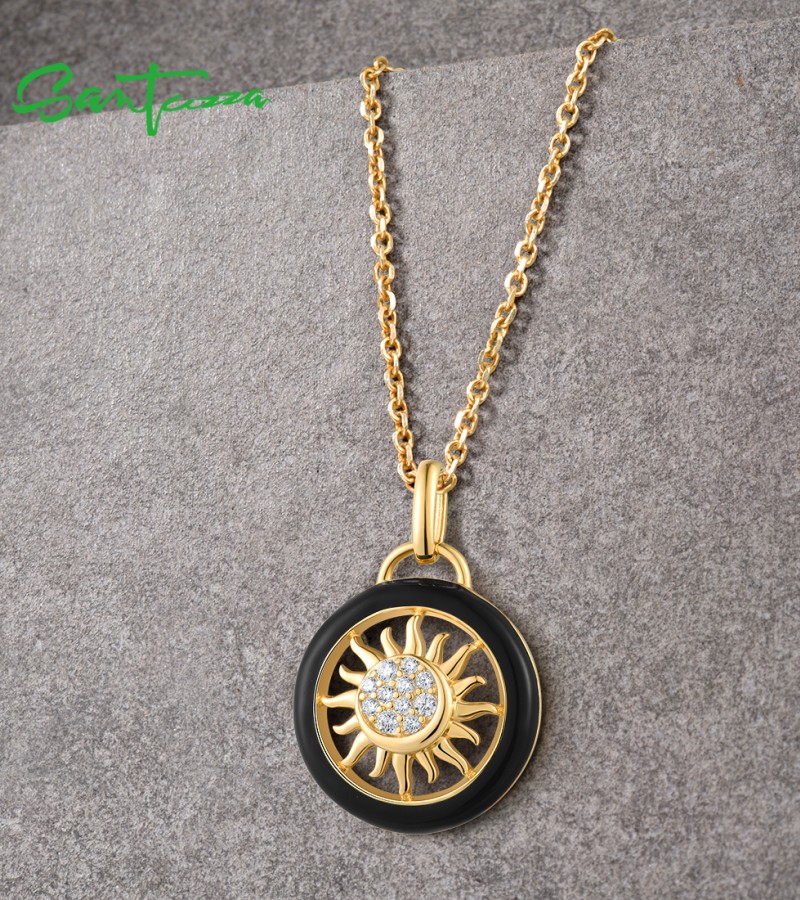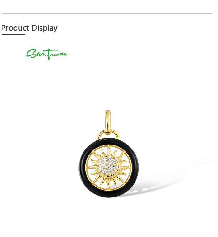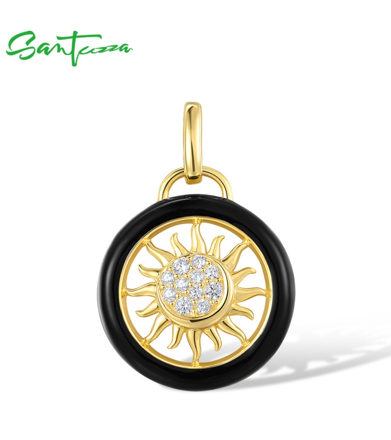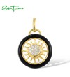 SANTUZZA 925 Sterling Silver Pendant White CZ Black Enamel Round Sun Jewelry