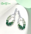 SANTUZZA 925 Sterling Silver Dangling Earrings Green Spinel White CZ Oval Jewelry