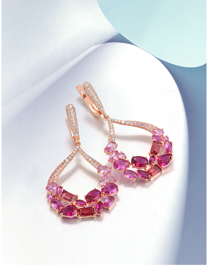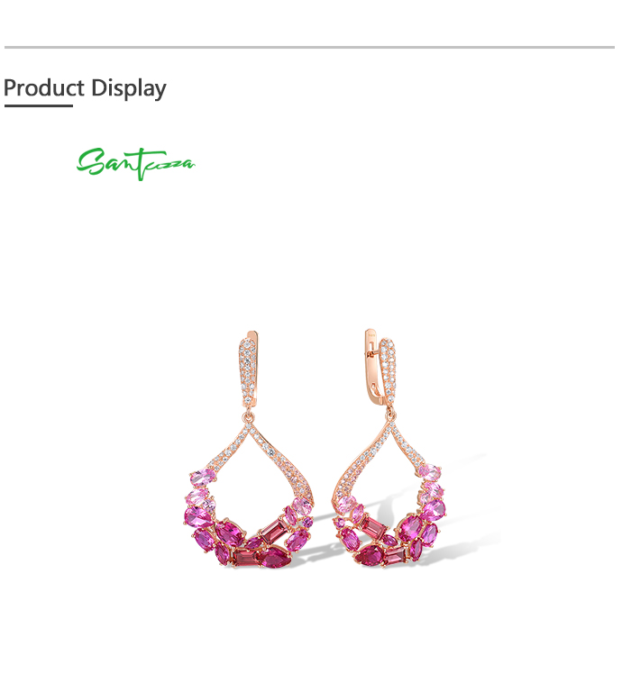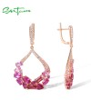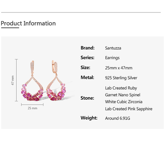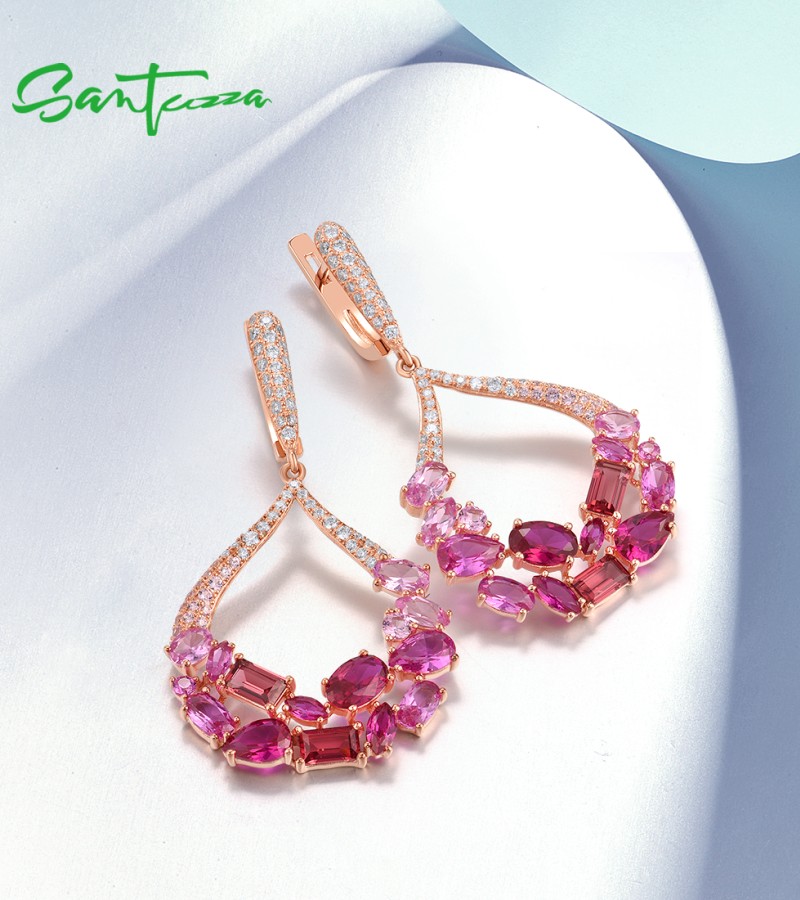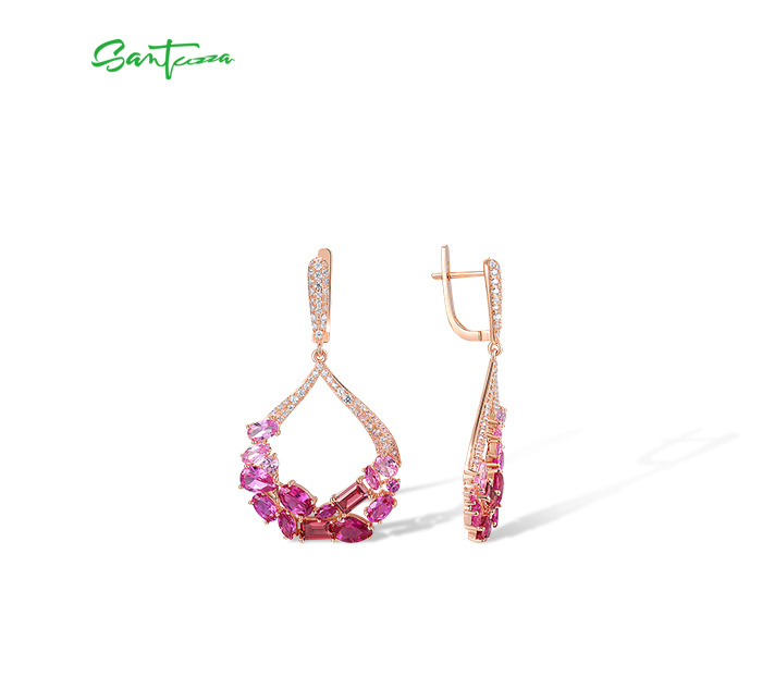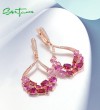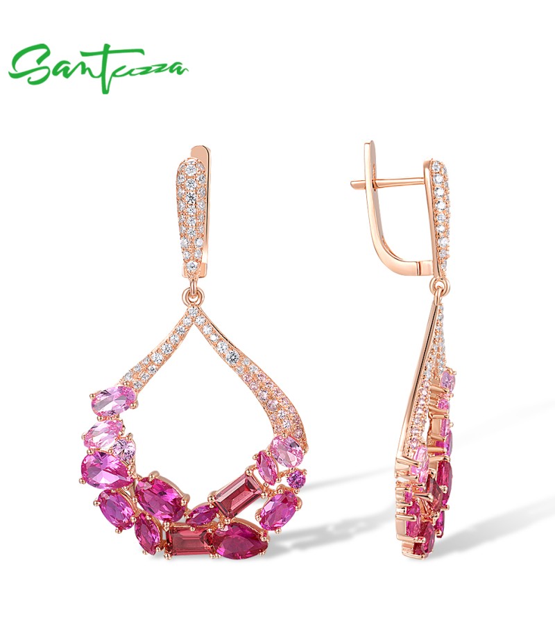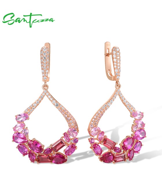 SANTUZZA 925 Sterling Silver Dangling Earrings Created Pink Sapphire Ruby Jewelry