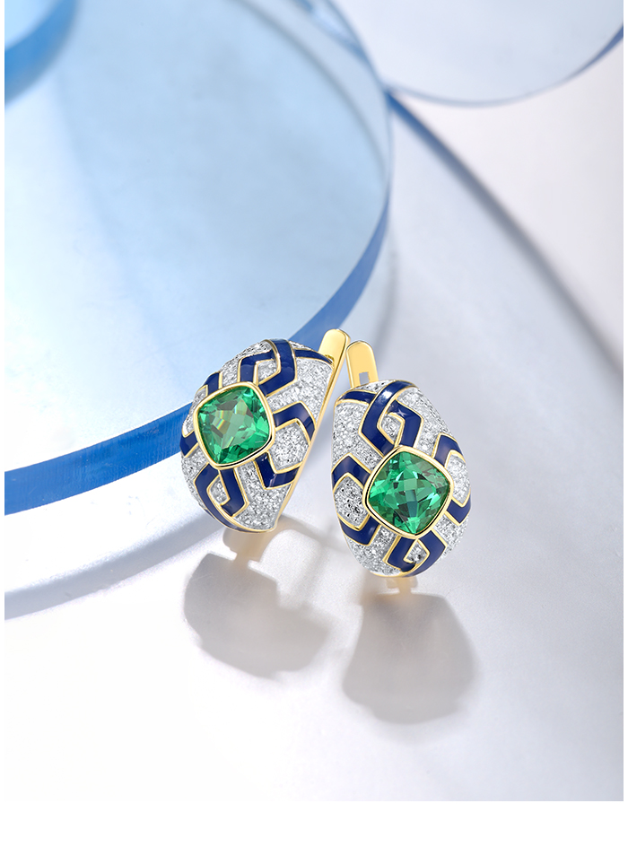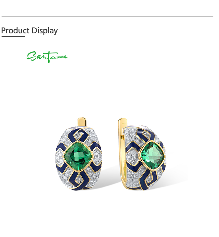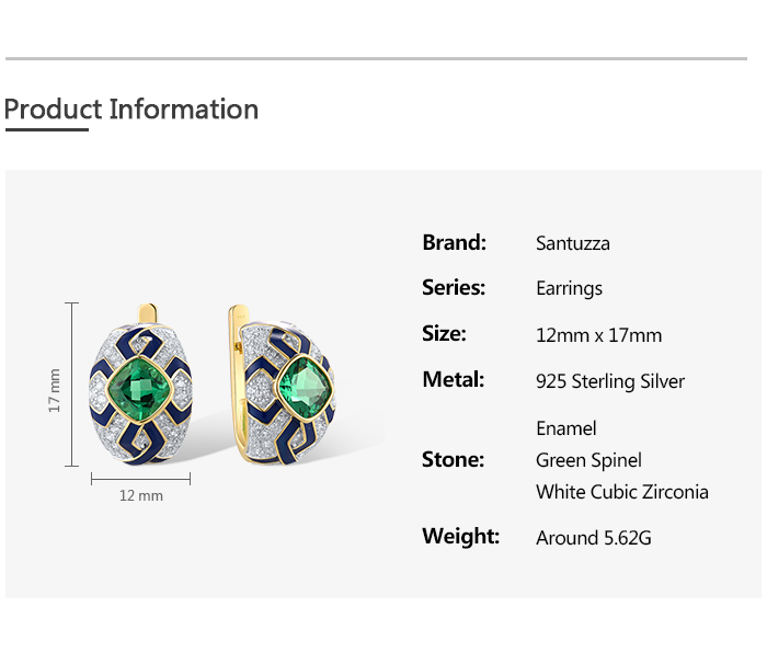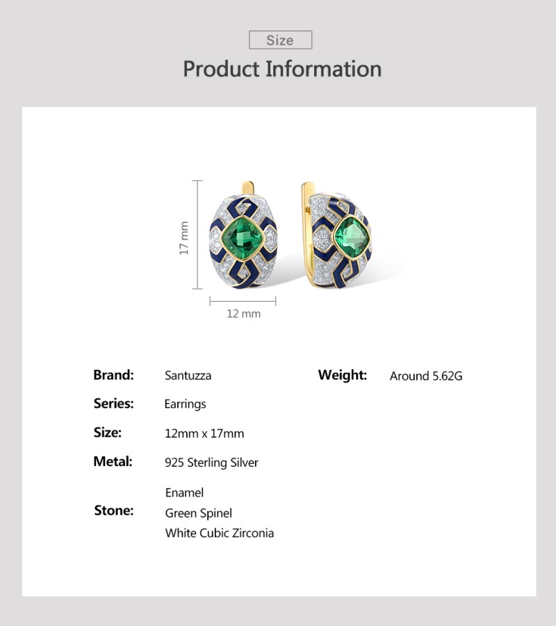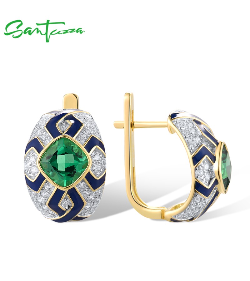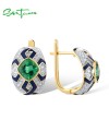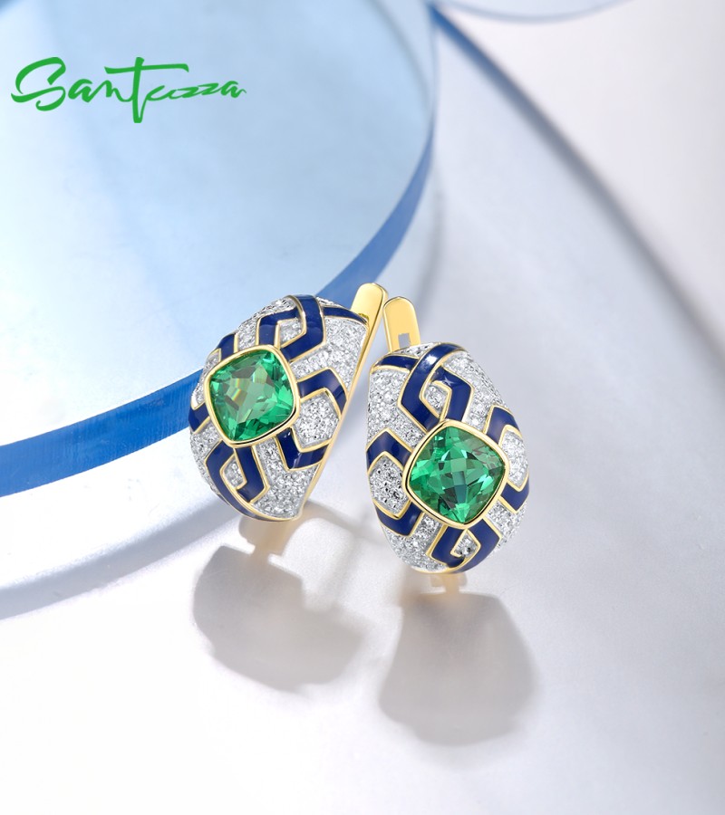 SANTUZZA 925 Sterling Silver Earrings Green Spinel Enamel Grand Solitaire Jewelry