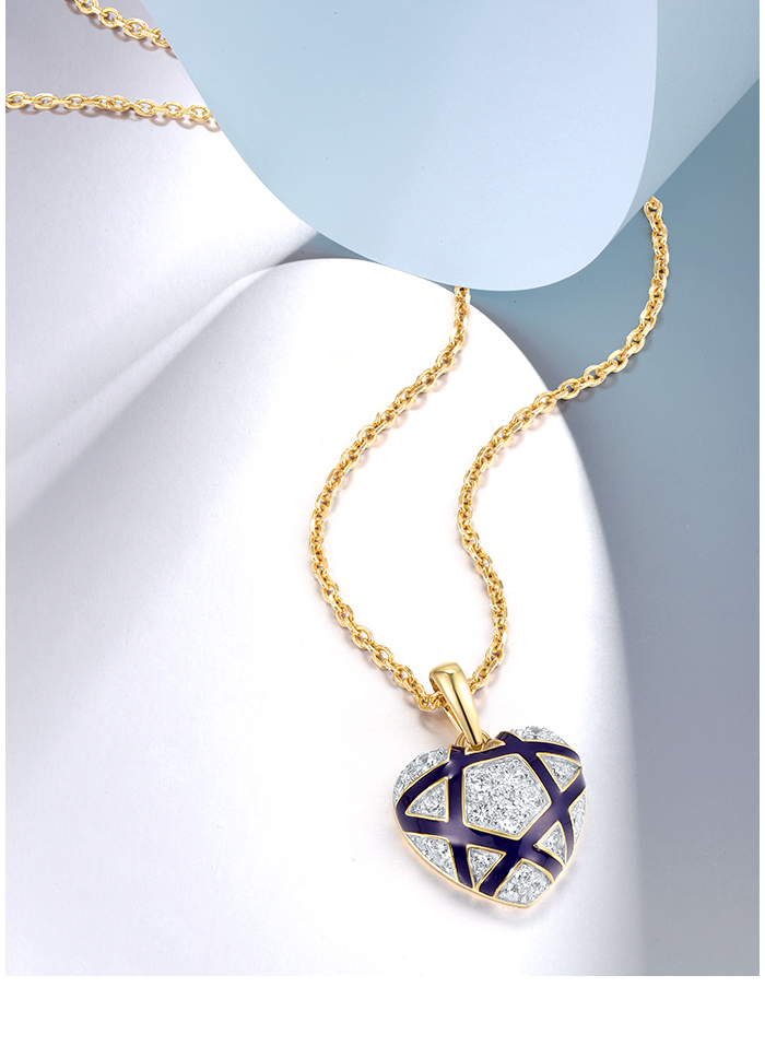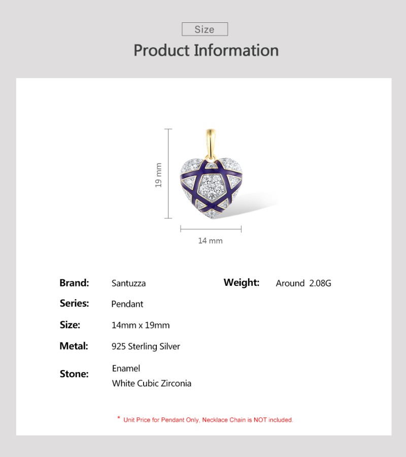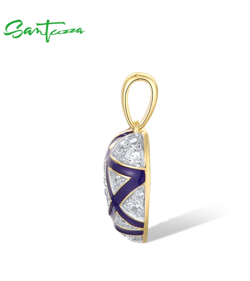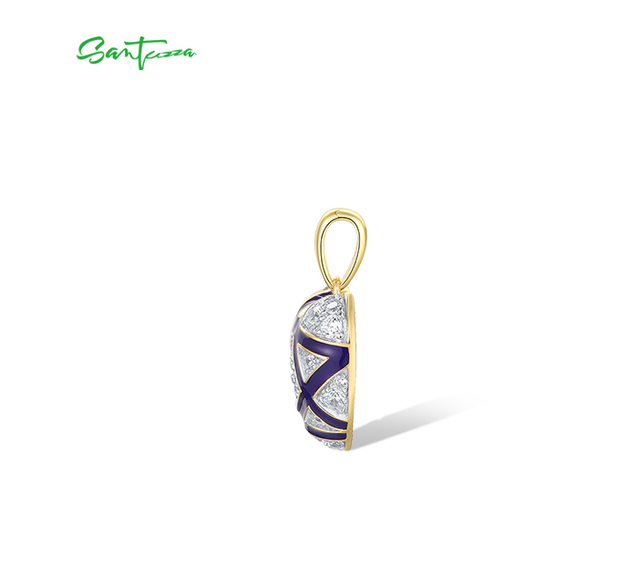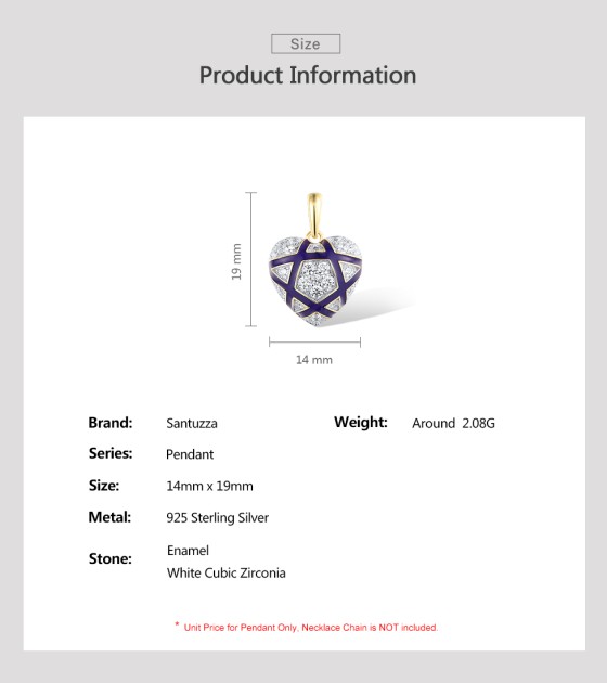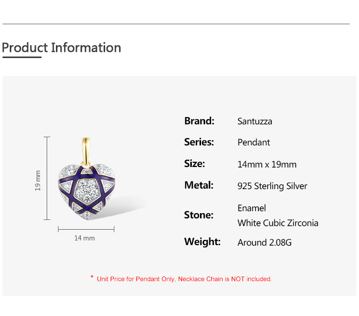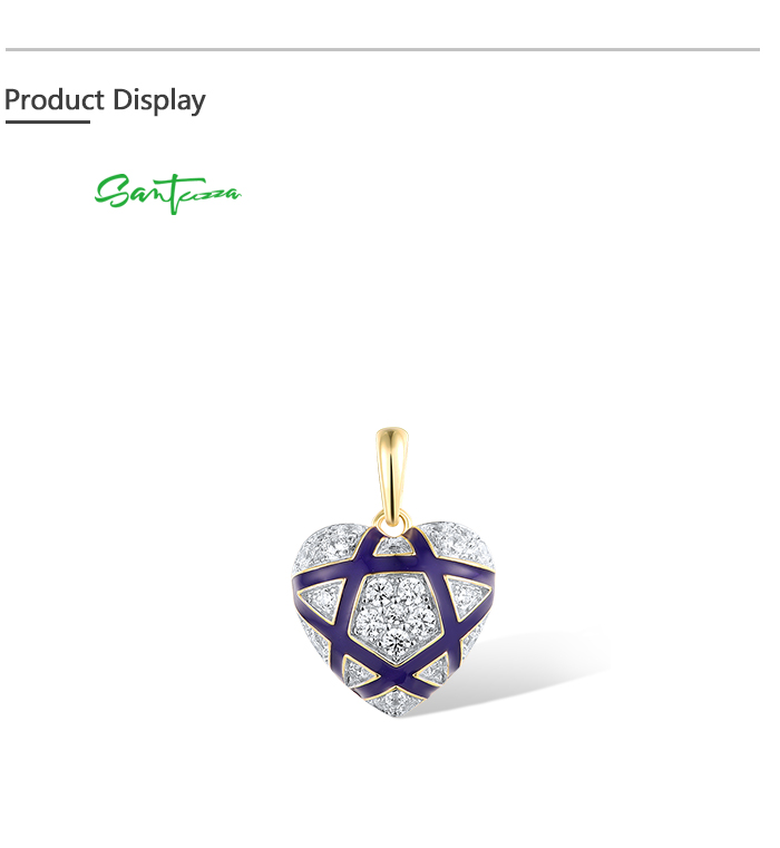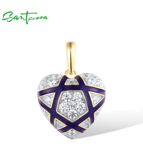 SANTUZZA 925 Sterling Silver Pendant White CZ Blue Heart Enamel Jewelry
