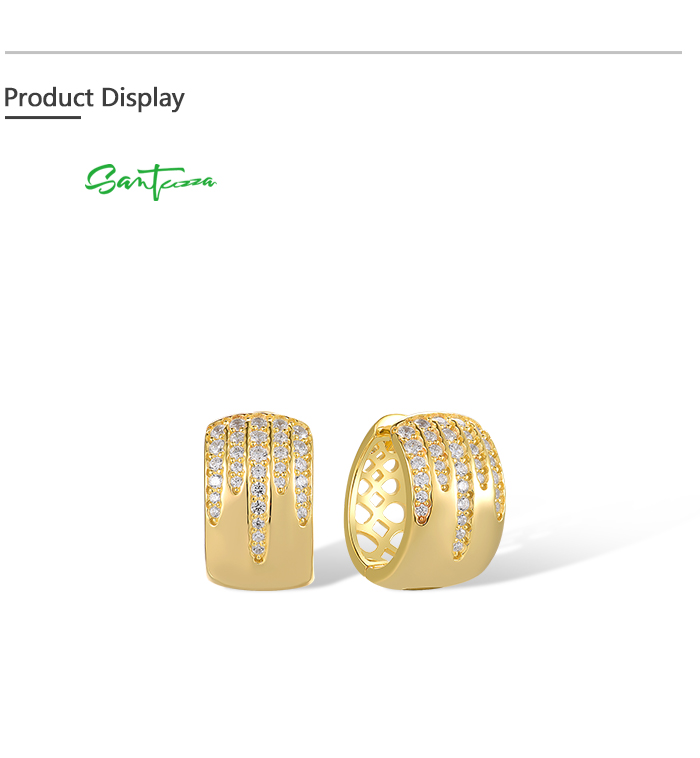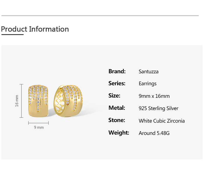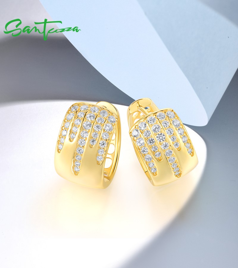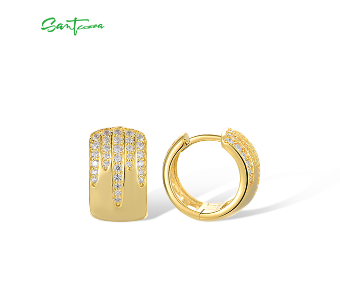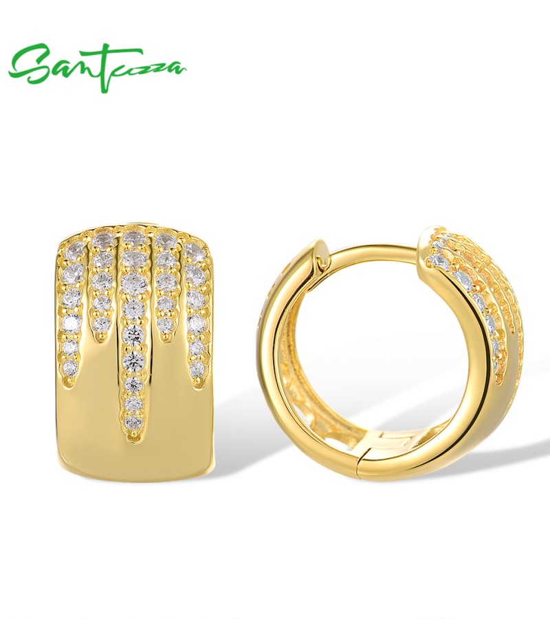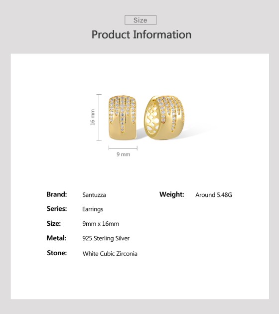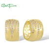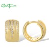 SANTUZZA 925 Sterling Silver Hoop Earrings White Cubic Zircon Jewelry