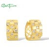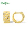SANTUZZA 925 Sterling Silver Hoop Earrings White Cubic Zircon Jewelry