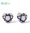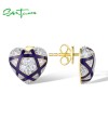 SANTUZZA 925 Sterling Silver Earrings White CZ Blue Enamel Heart Jewelry
