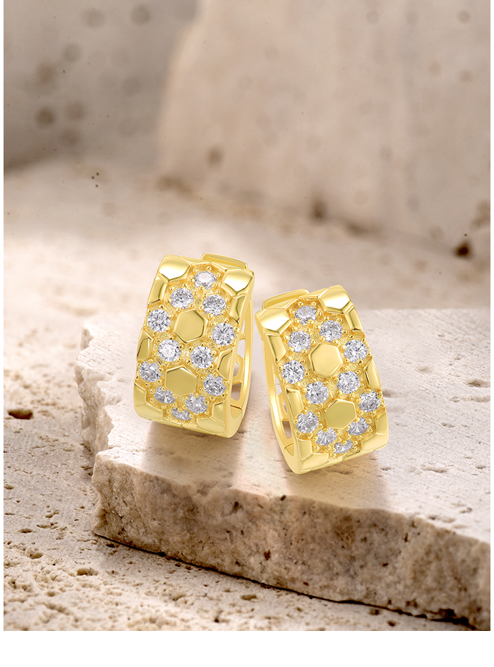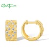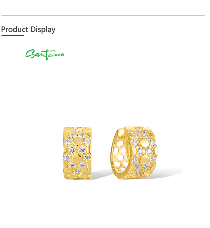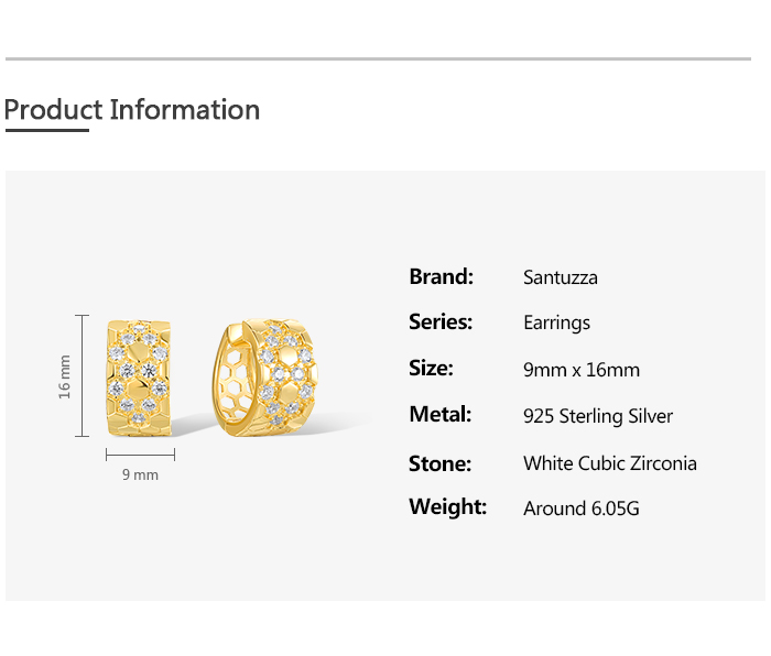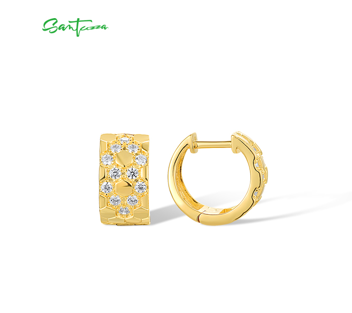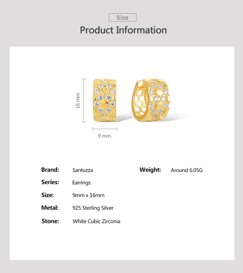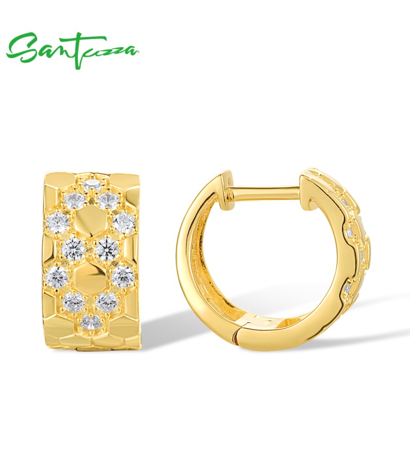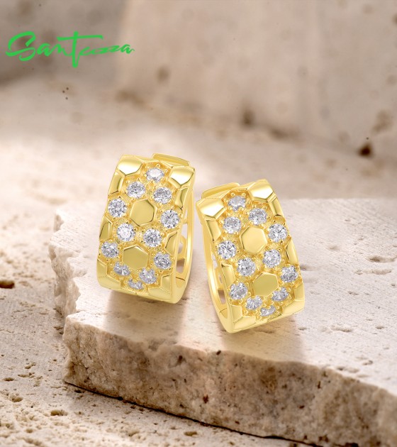 SANTUZZA 925 Sterling Silver Hoop Earrings White Cubic Zircon Hexagon Jewelry