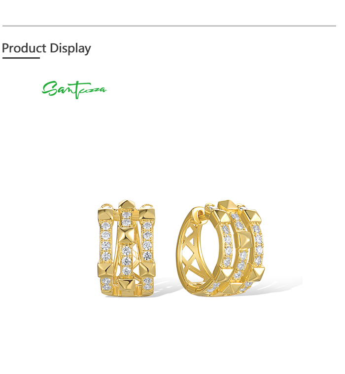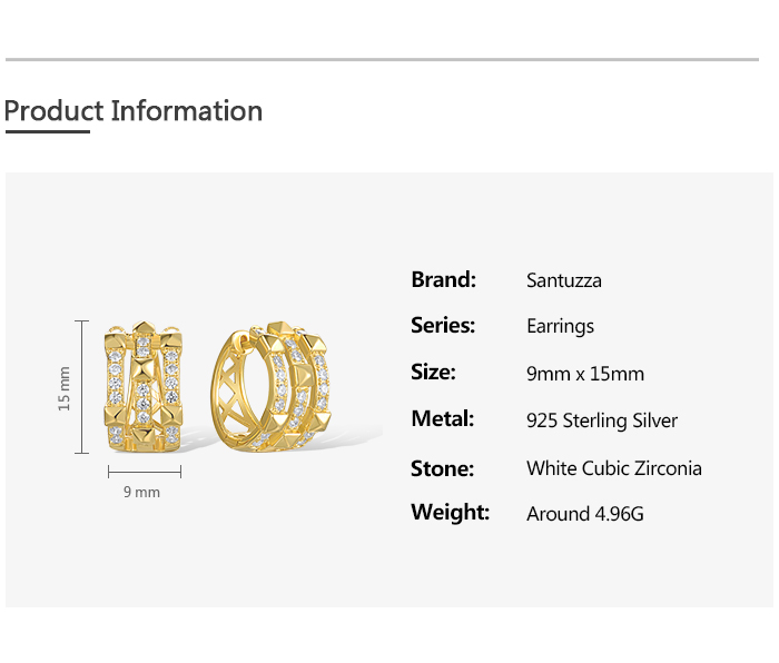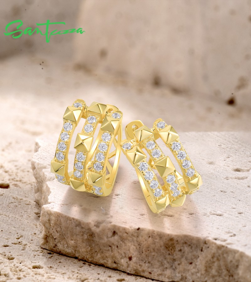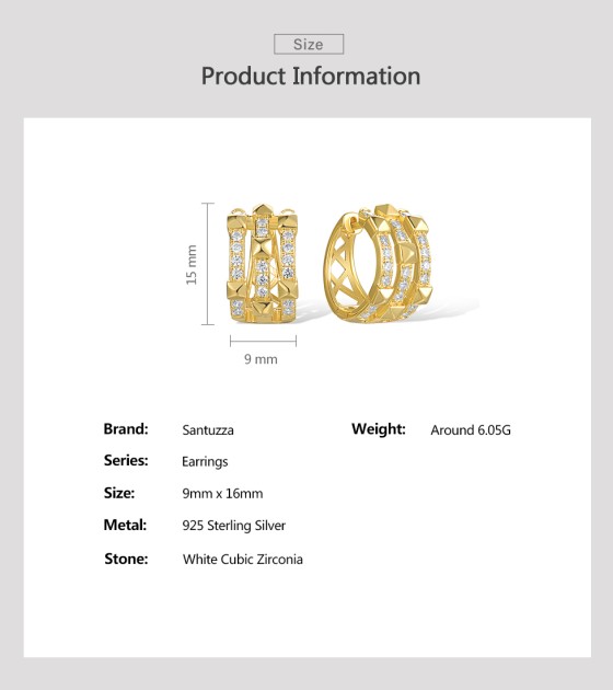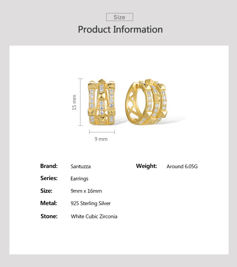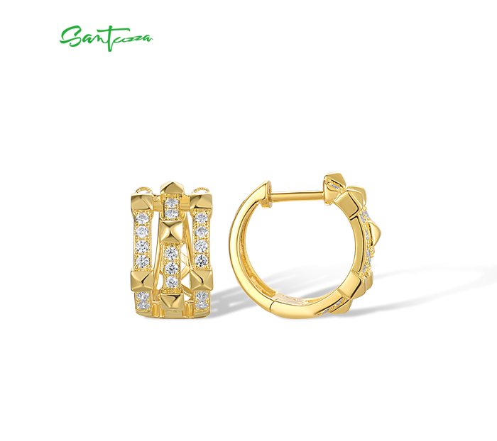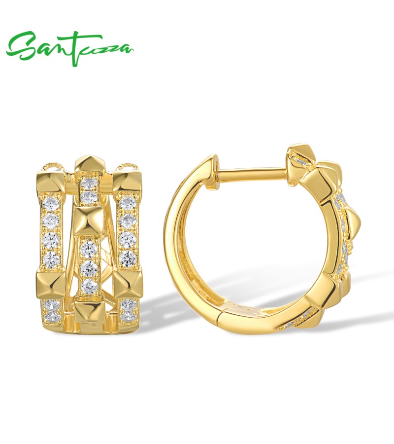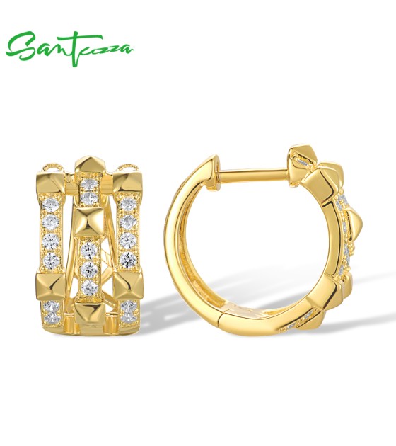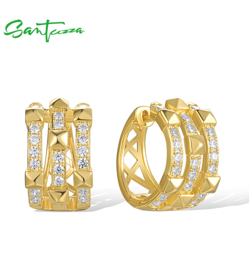 SANTUZZA 925 Sterling Silver Loop Earrings White Cubic Zircon Geometric Jewelry