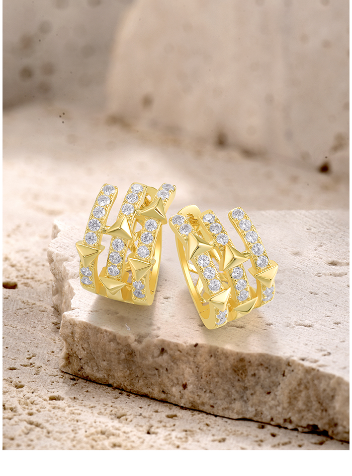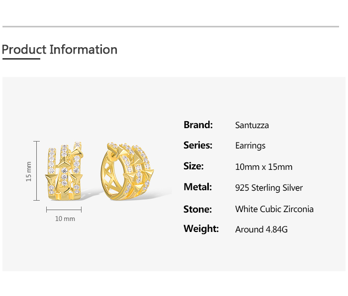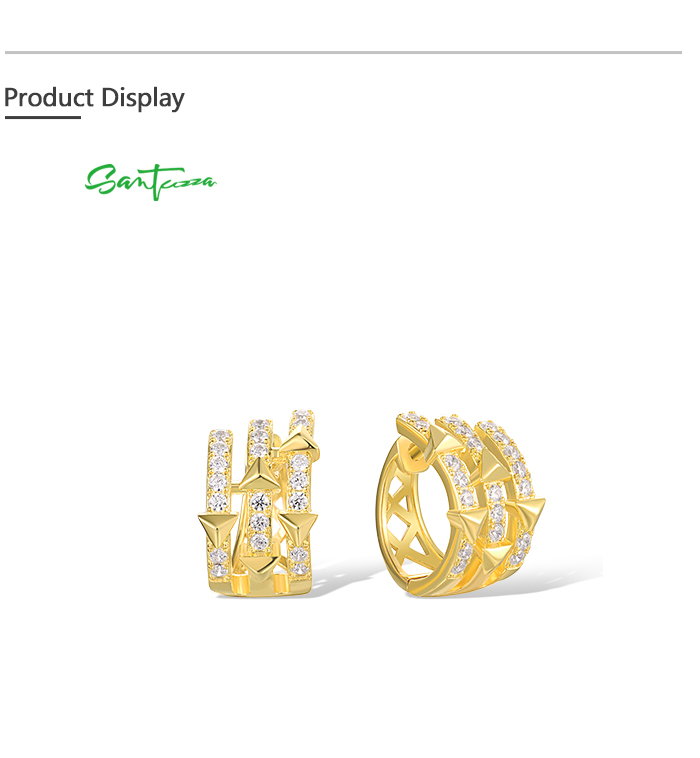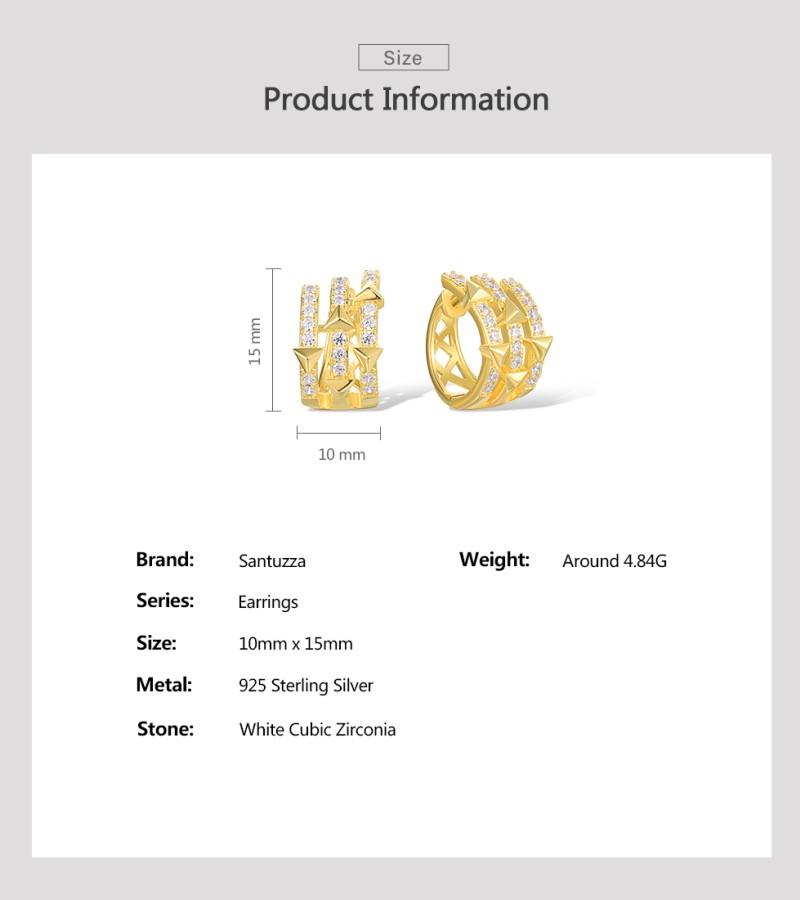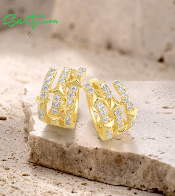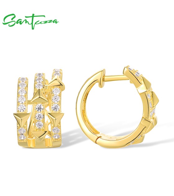SANTUZZA 925 Sterling Silver Hoop Earrings White Cubic Zircon Pyramid Jewelry