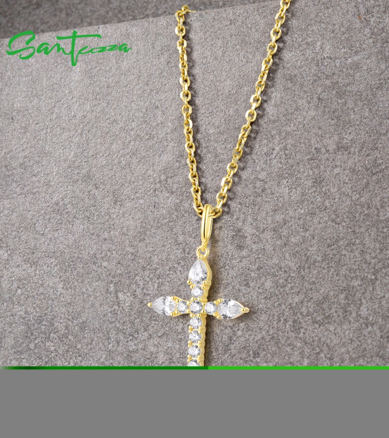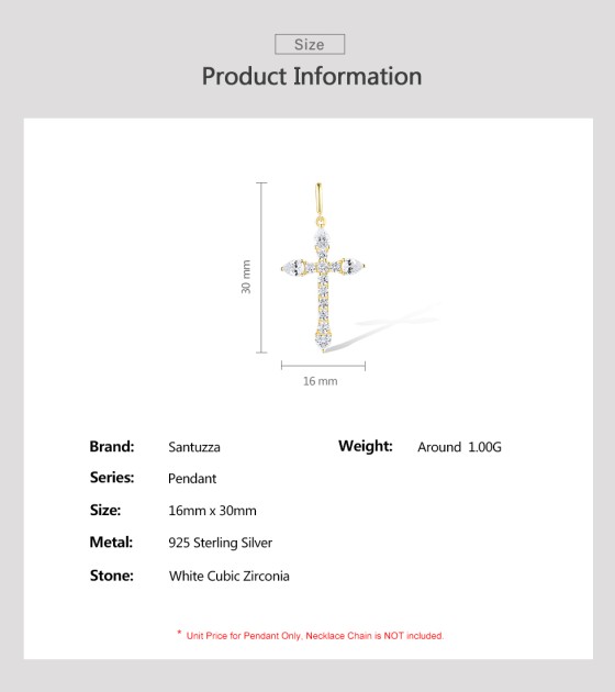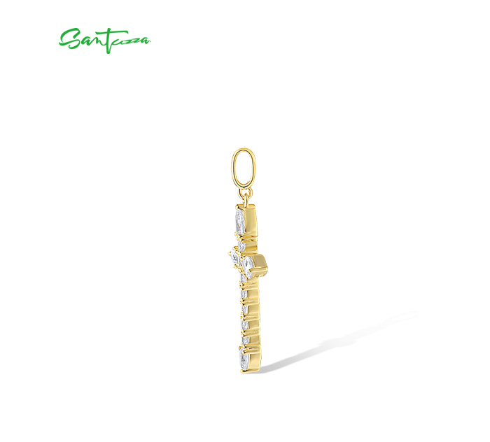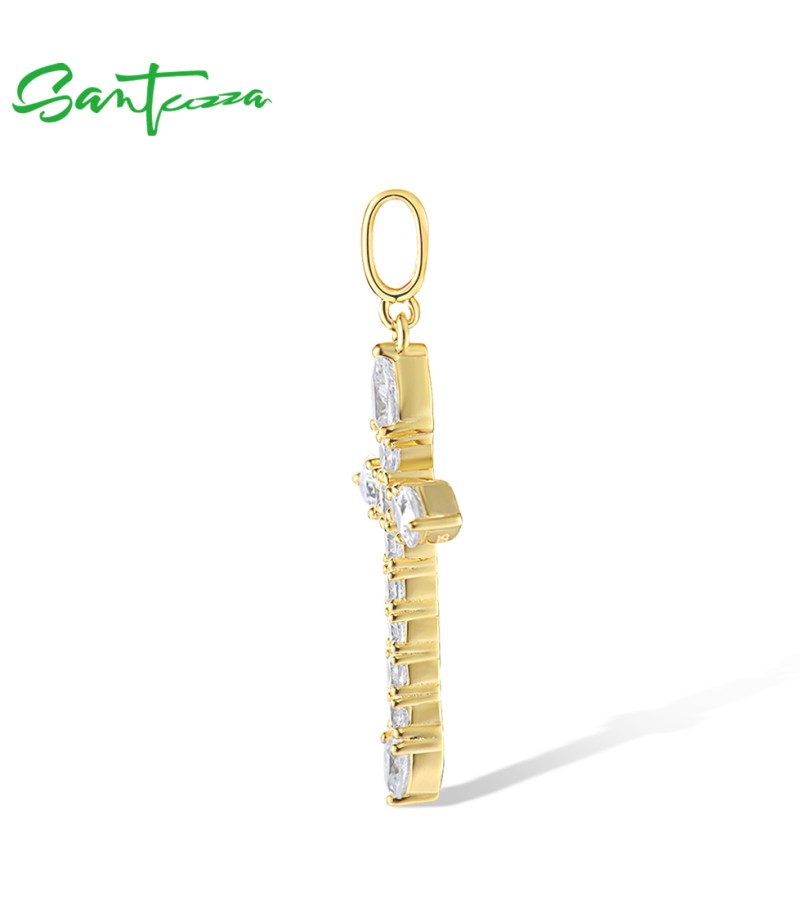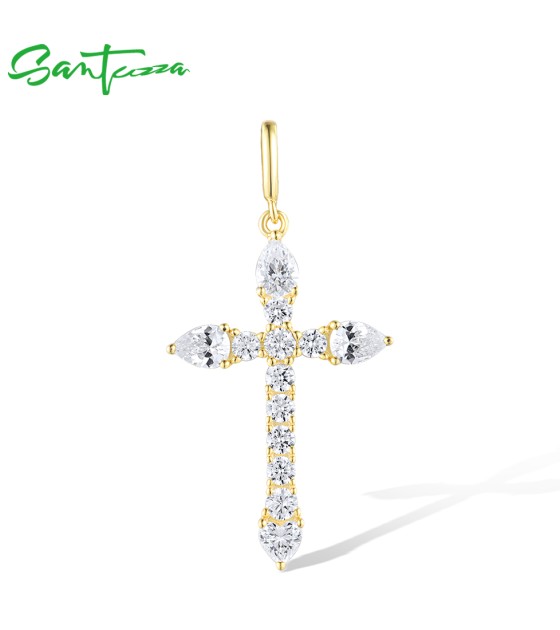 SANTUZZA 925 Sterling Silver Pendant White White Cubic Zirconia Cross Jewelry