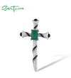 SANTUZZA 925 Sterling Silver Cross Pendant White CZ Black Spinel Green Chalcedony Jewelry