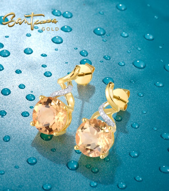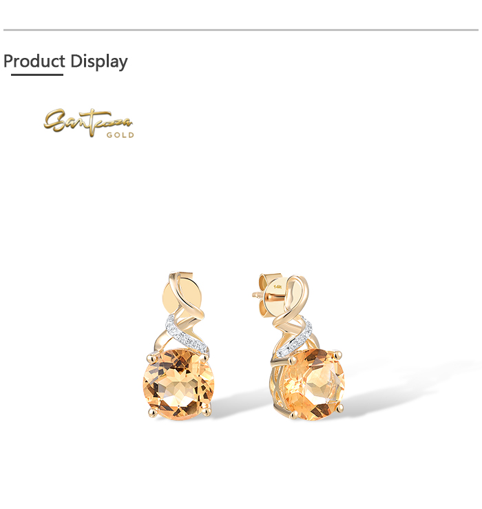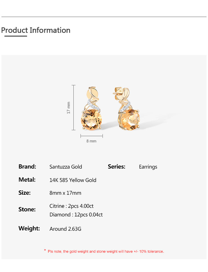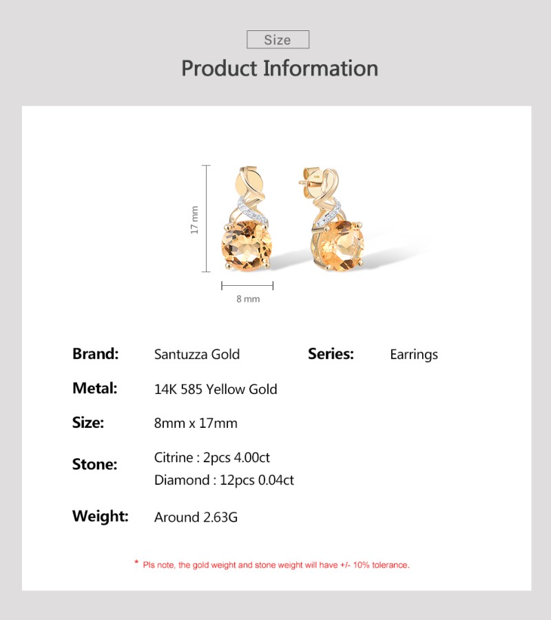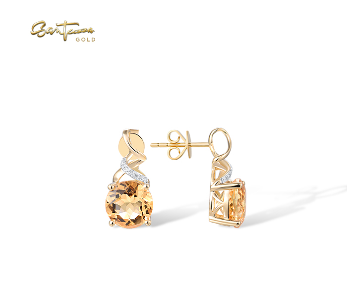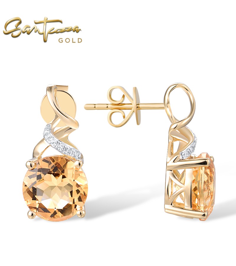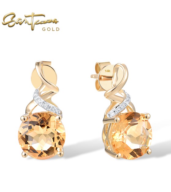 SANTUZZA 14K 585 Yellow Gold Stud Earrings Diamonds Citrine Fine Jewelry