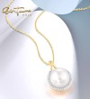SANTUZZA 14K 585 Yellow Gold Pendant Diamond Fresh Water Pearl Fine Jewelry