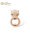 SANTUZZA 14K 585 Rose Gold Leopard Pendant Emerald Diamond Fine Jewelry