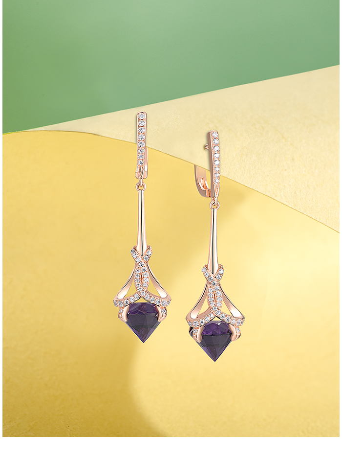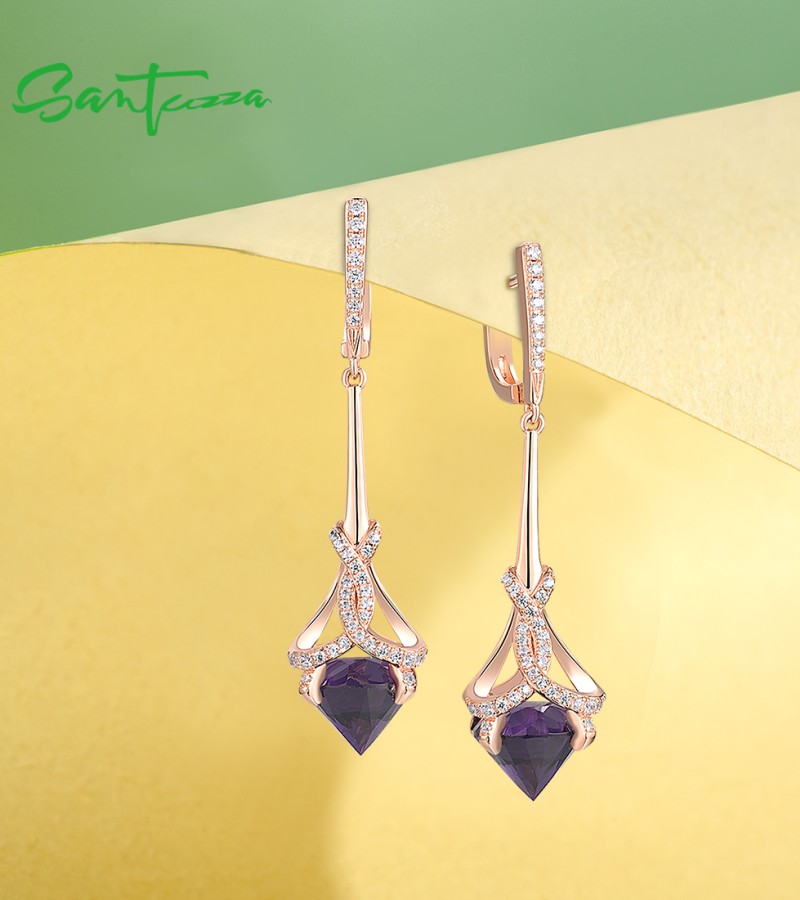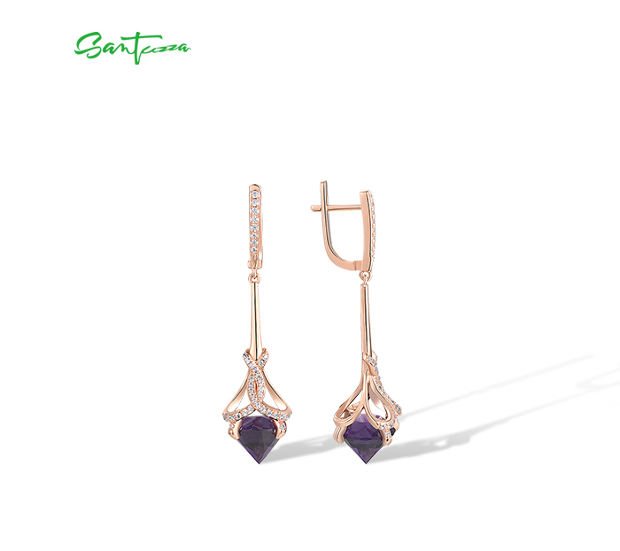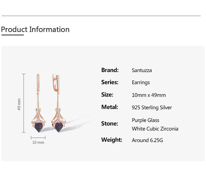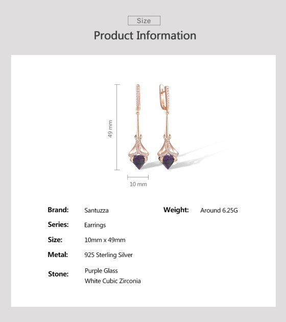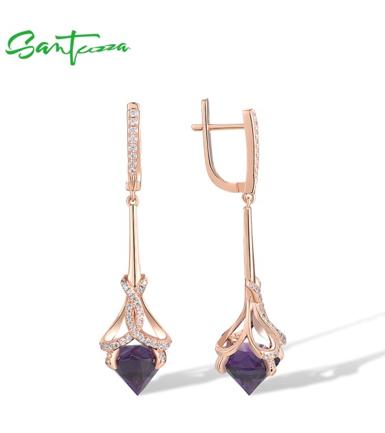 SANTUZZA 925 Sterling Silver Dangling Earrings White CZ Purple Stone Jewelry