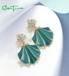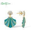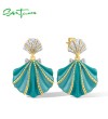 SANTUZZA 925 Sterling Silver Stud Earrings White CZ Greenish Shell Enamel Summer New Jewelry