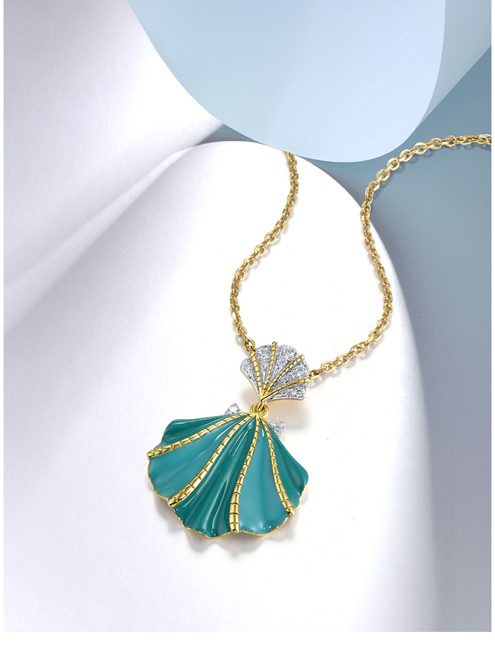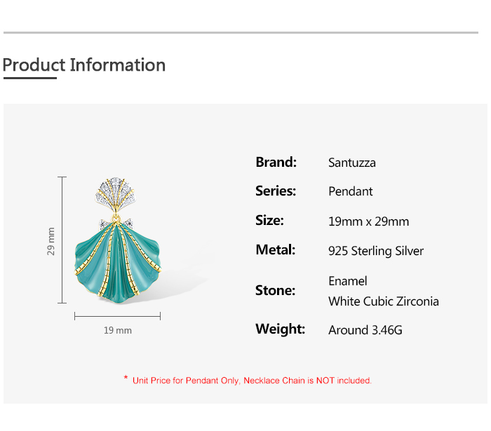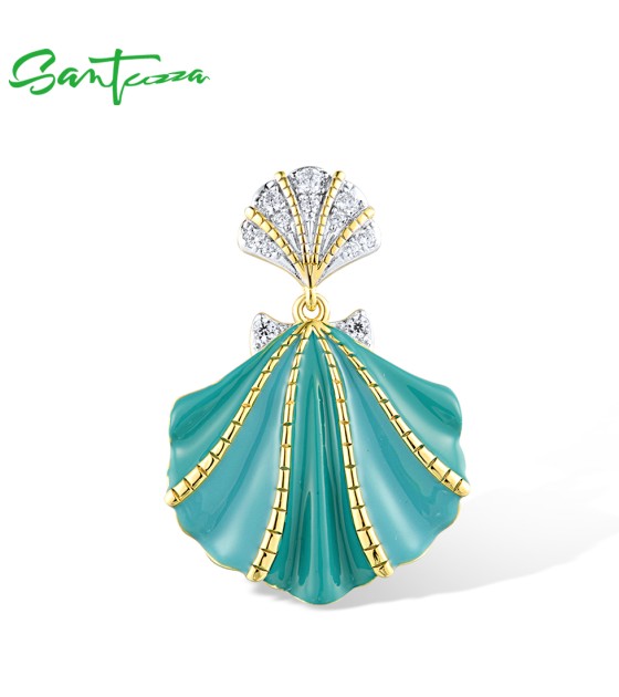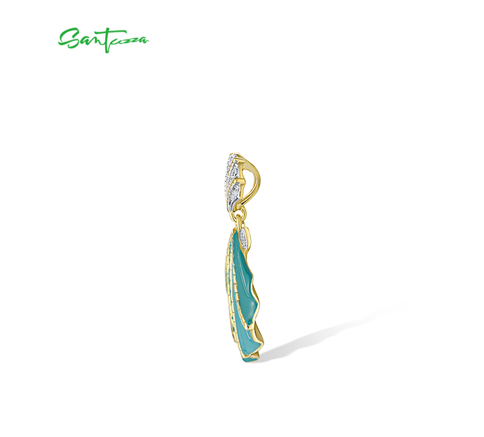 SANTUZZA 925 Sterling Silver Pendant White CZ Greenish Enamel Summer New Jewelry