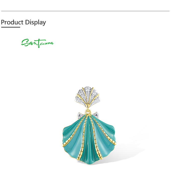 SANTUZZA 925 Sterling Silver Stud Earrings White CZ Greenish Shell Enamel Summer New Jewelry