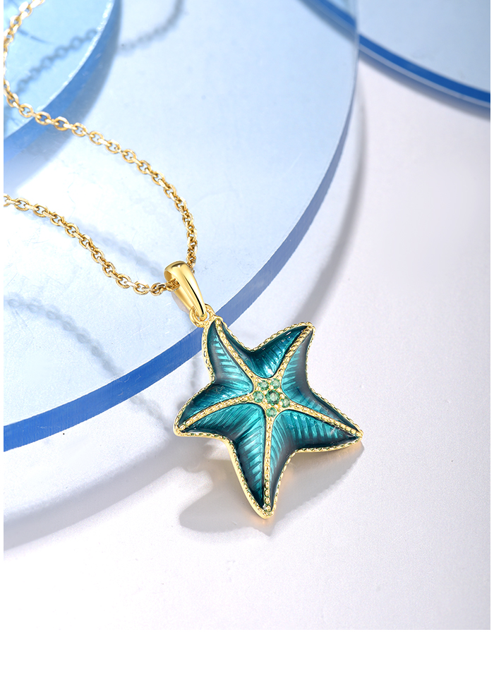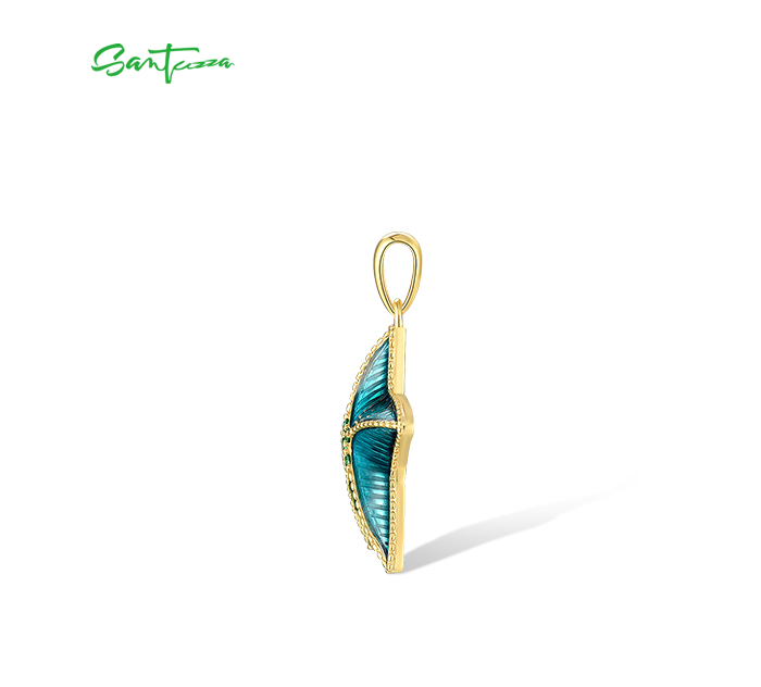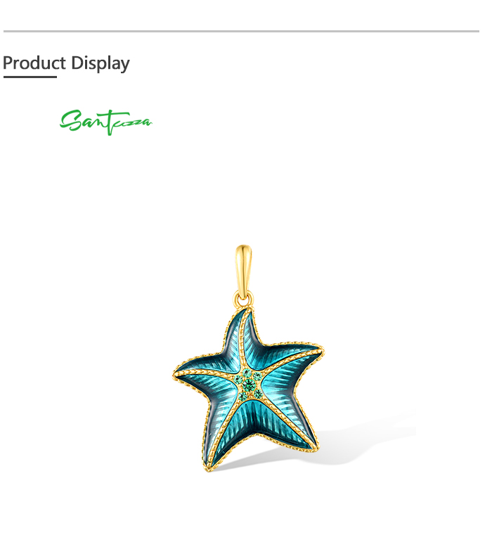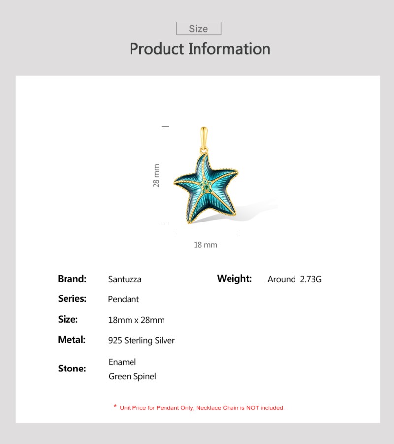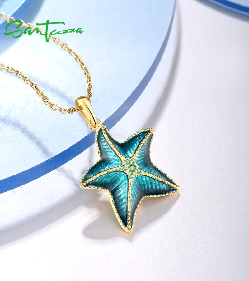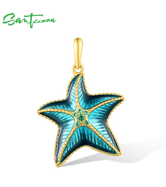 SANTUZZA 925 Sterling Silver Pendant Green Spinel Enamel Star Fish Summer New Jewelry