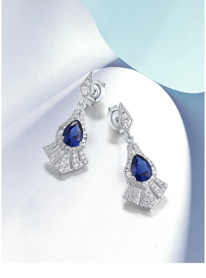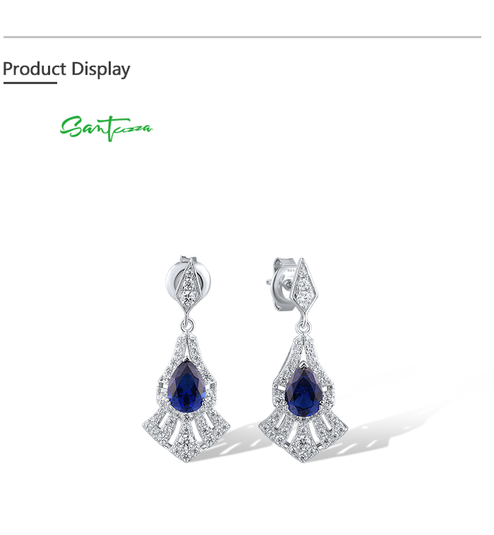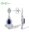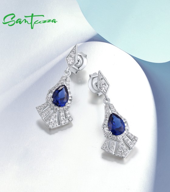 SANTUZZA 925 Sterling Silver Stud Earrings White CZ Blue Spinel Long Jewelry