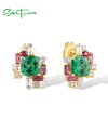 SANTUZZA 925 Sterling Silver Stud Earrings Colorful Gem Stones Starry Jewelry