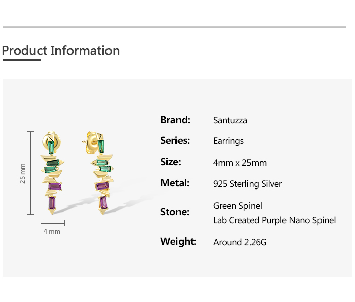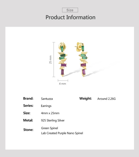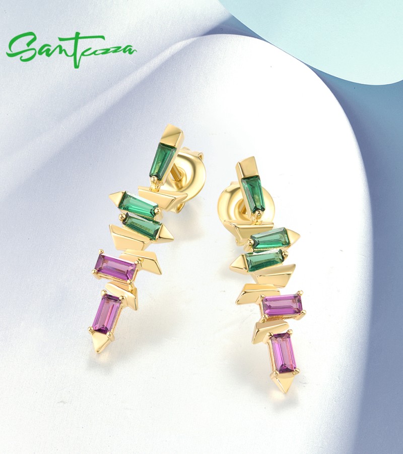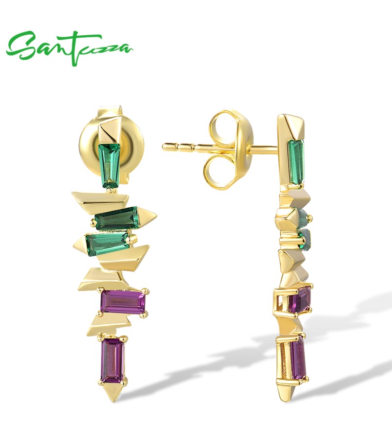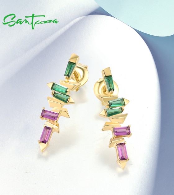 SANTUZZA 925 Sterling Silver Earrings Green Purple Spinel Starry Jewelry
