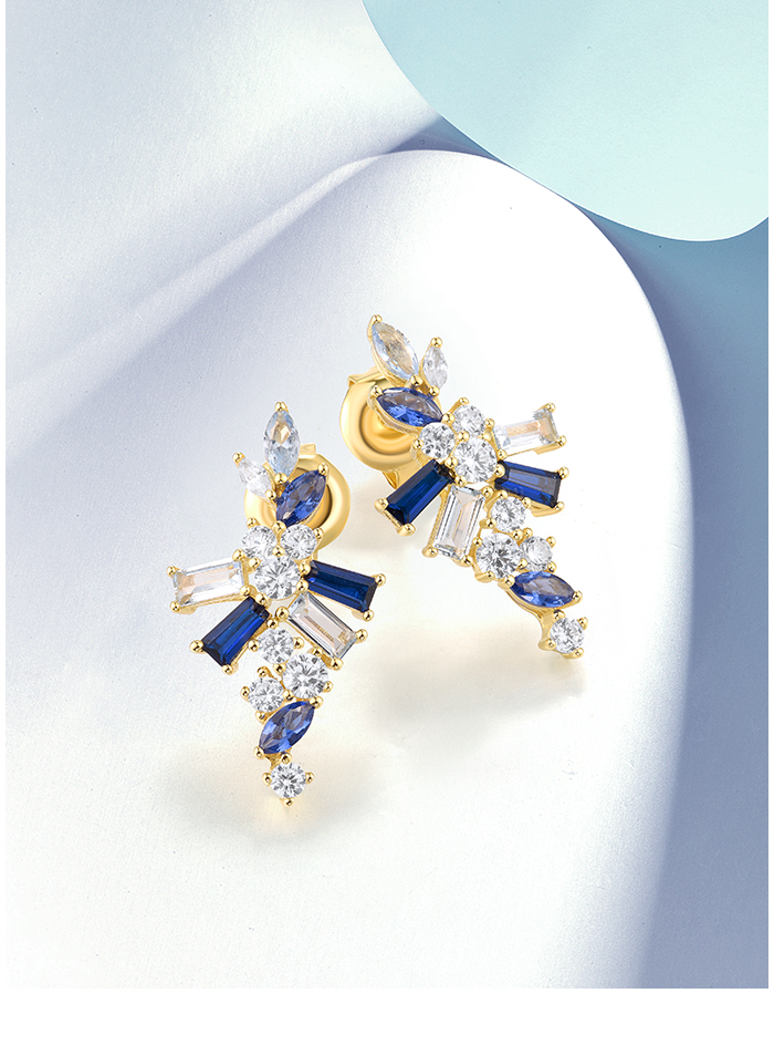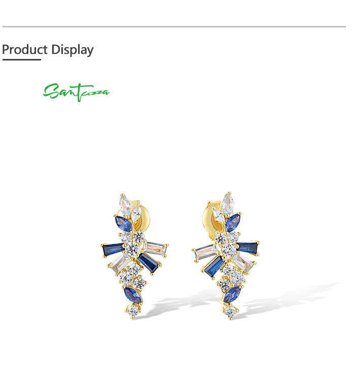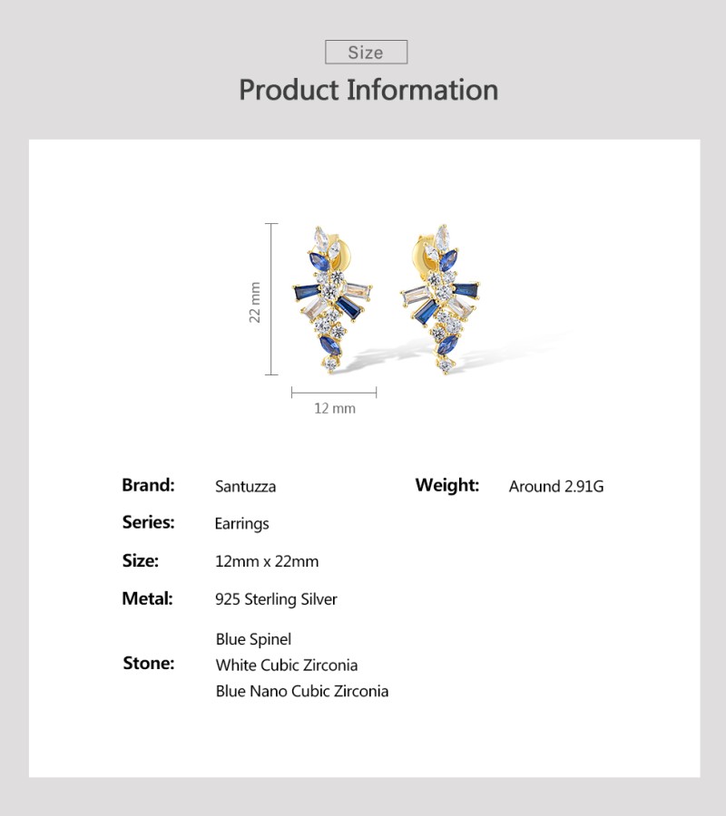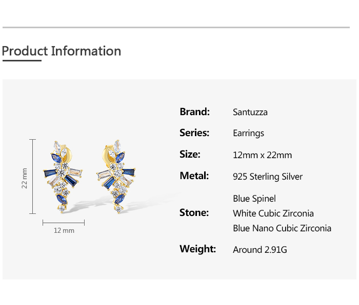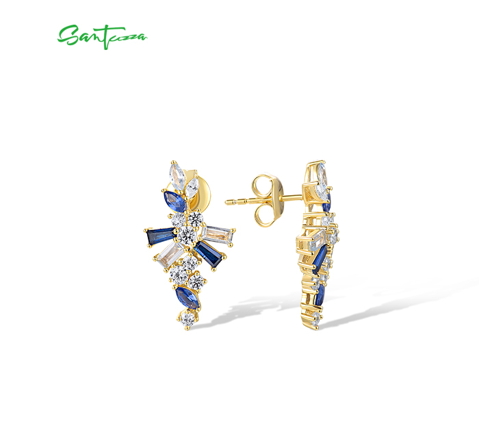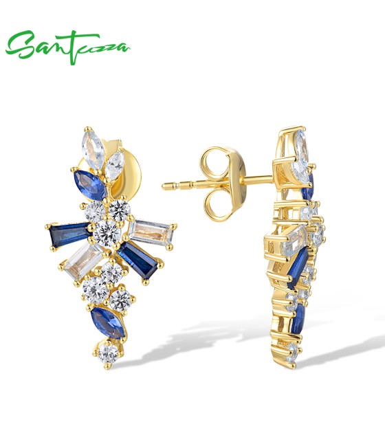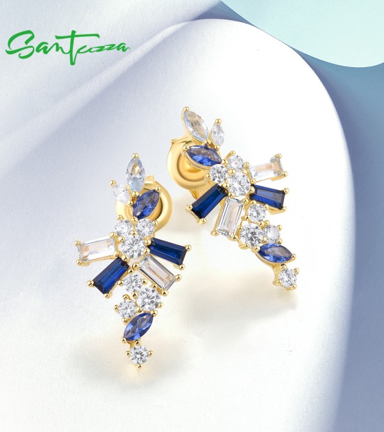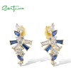 SANTUZZA 925 Sterling Silver Earrings Blue Spinel White CZ Starry Jewelry