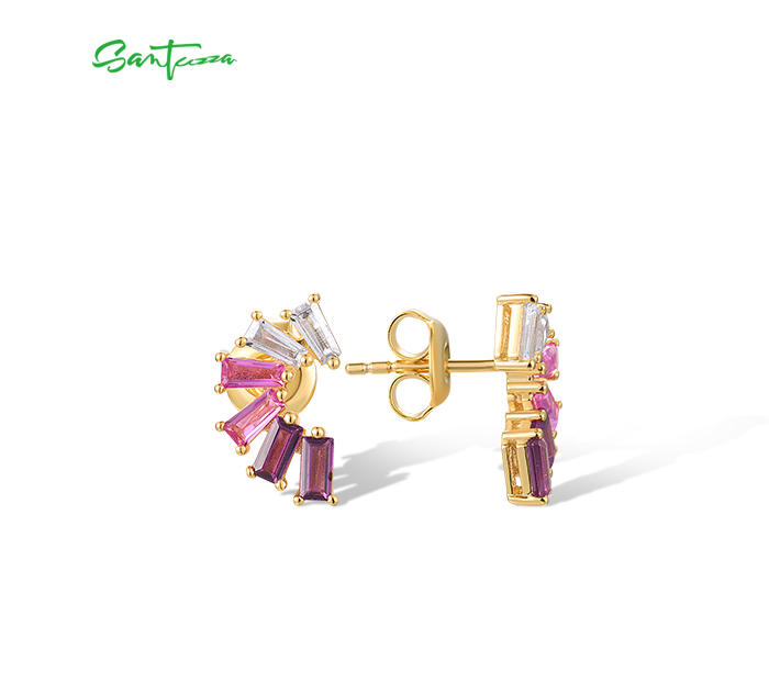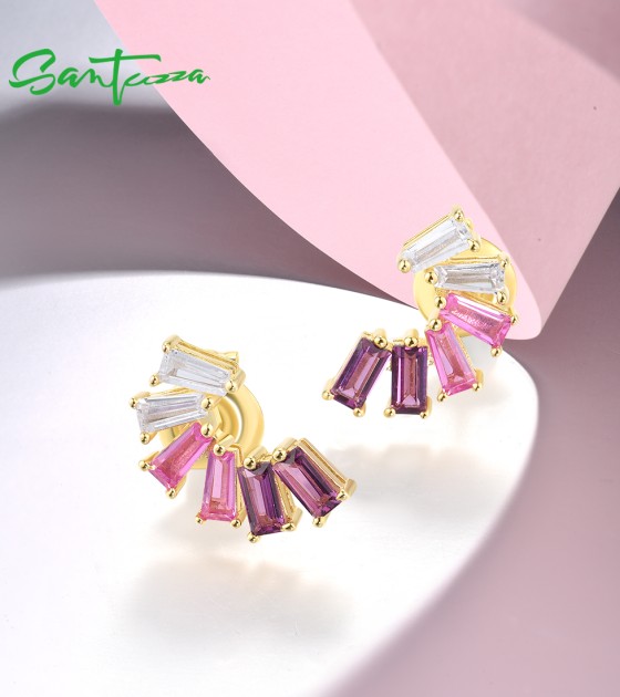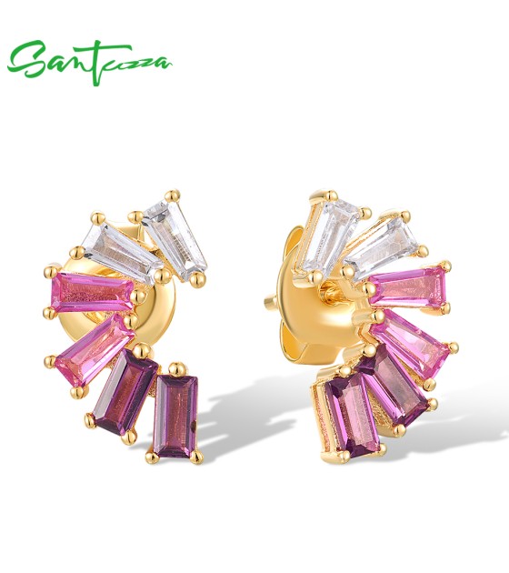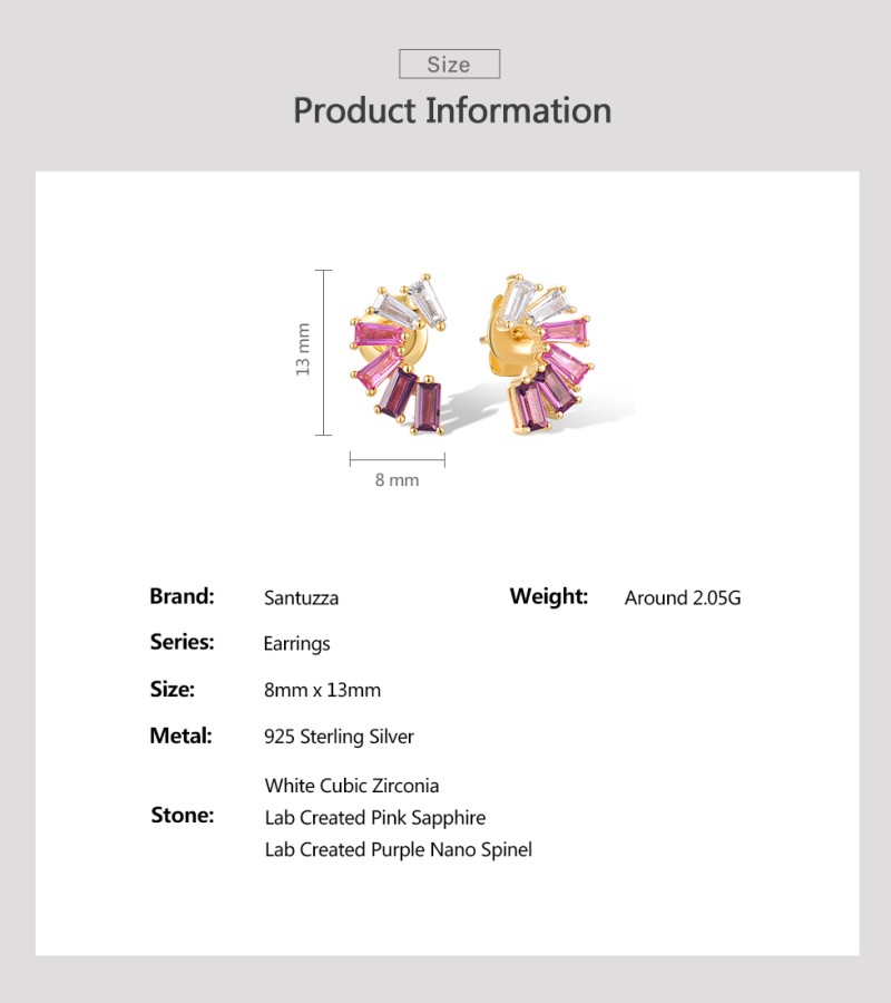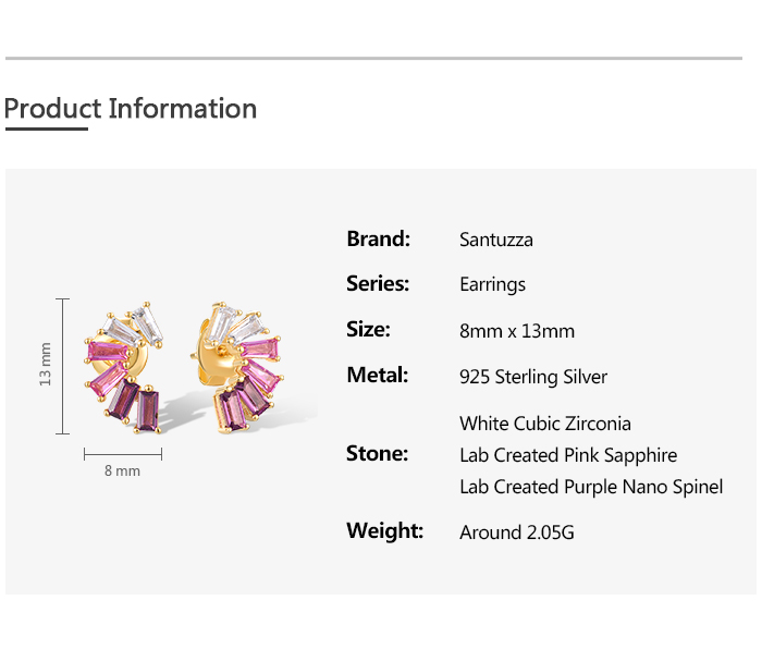 SANTUZZA 925 Sterling Silver Earrings Created Purple Spinel White CZ Jewelry