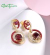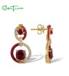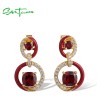 SANTUZZA 925 Sterling Silver Drop Earrings Created Ruby Enamel Circle Jewelry