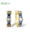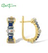 SANTUZZA 925 Sterling Silver Earrings Blue Spinel Geometric Jewelry