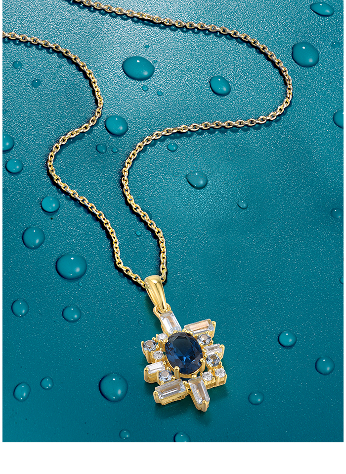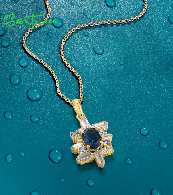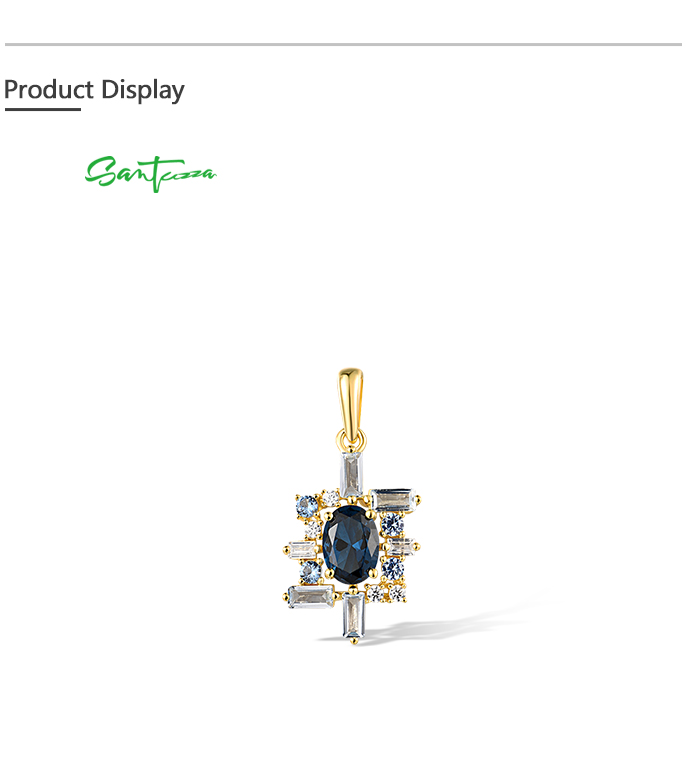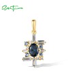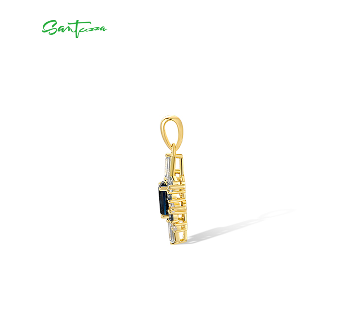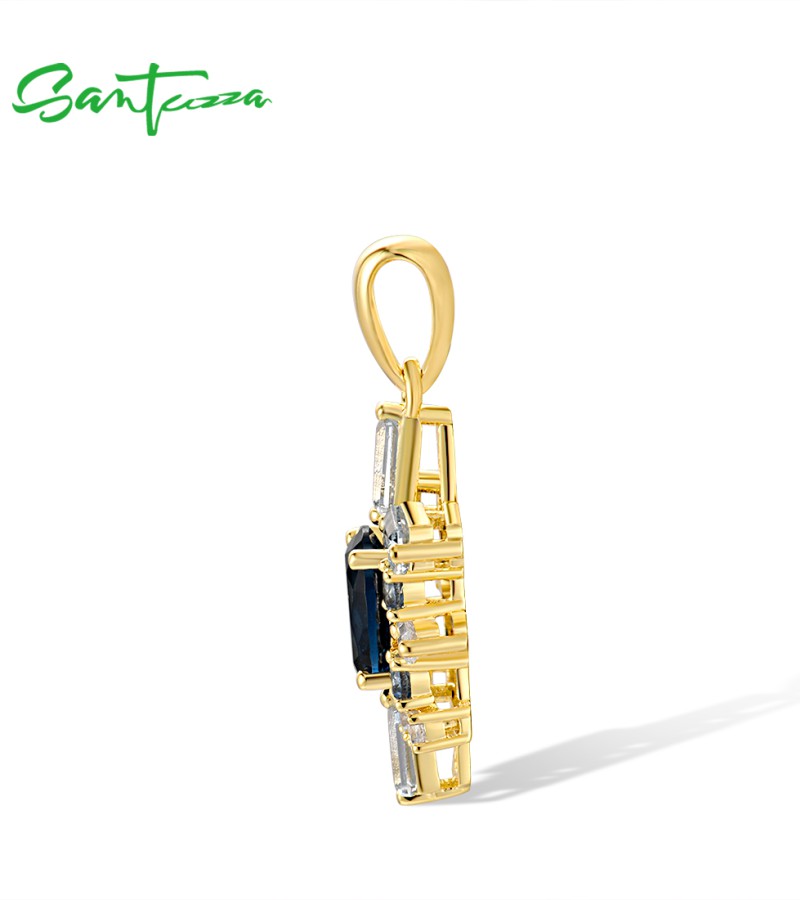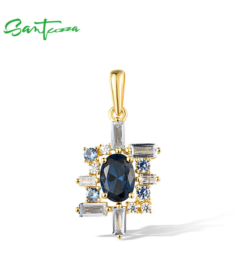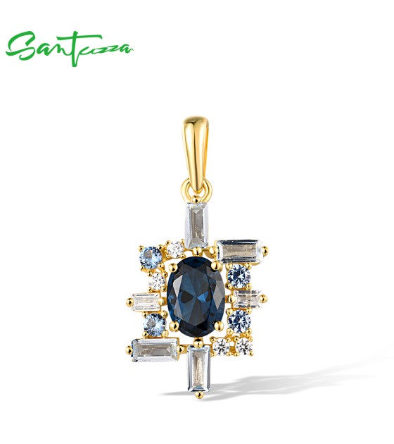 SANTUZZA 925 Sterling Silver Pendant Blue Spinel White CZ Delicate Solitaire Jewelry