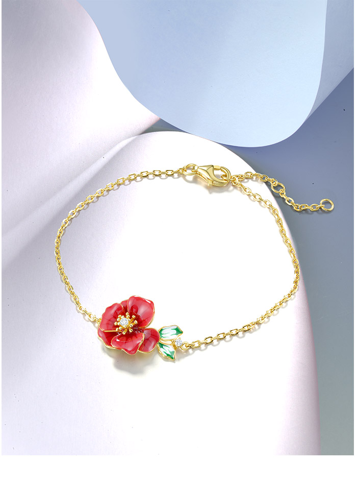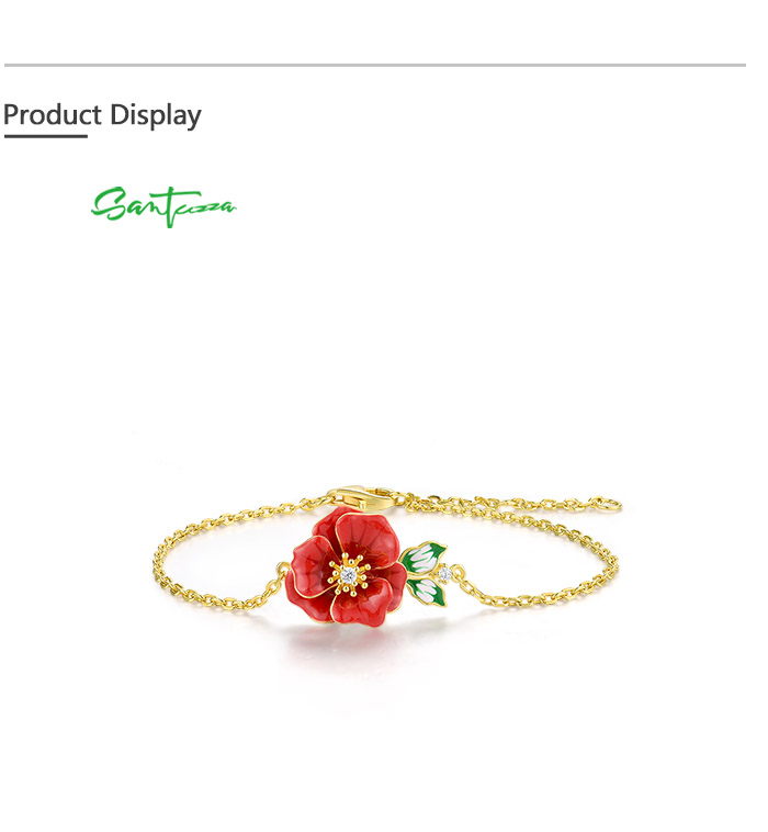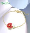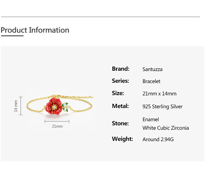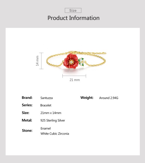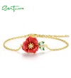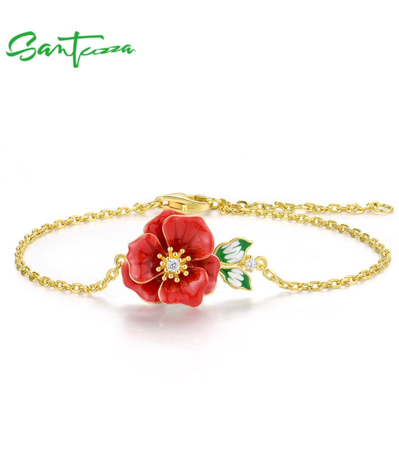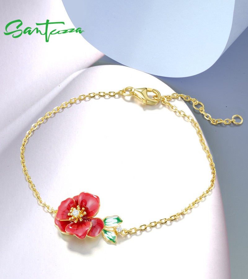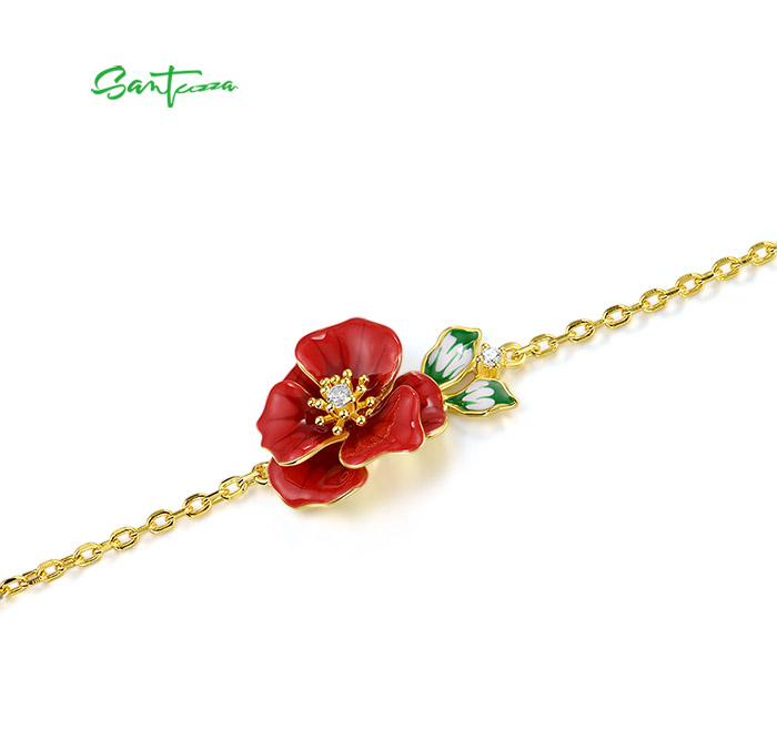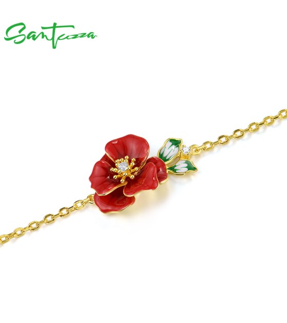 SANTUZZA 925 Sterling Silver Adjustable Bracelet Red Enamel Flower Jewelry
