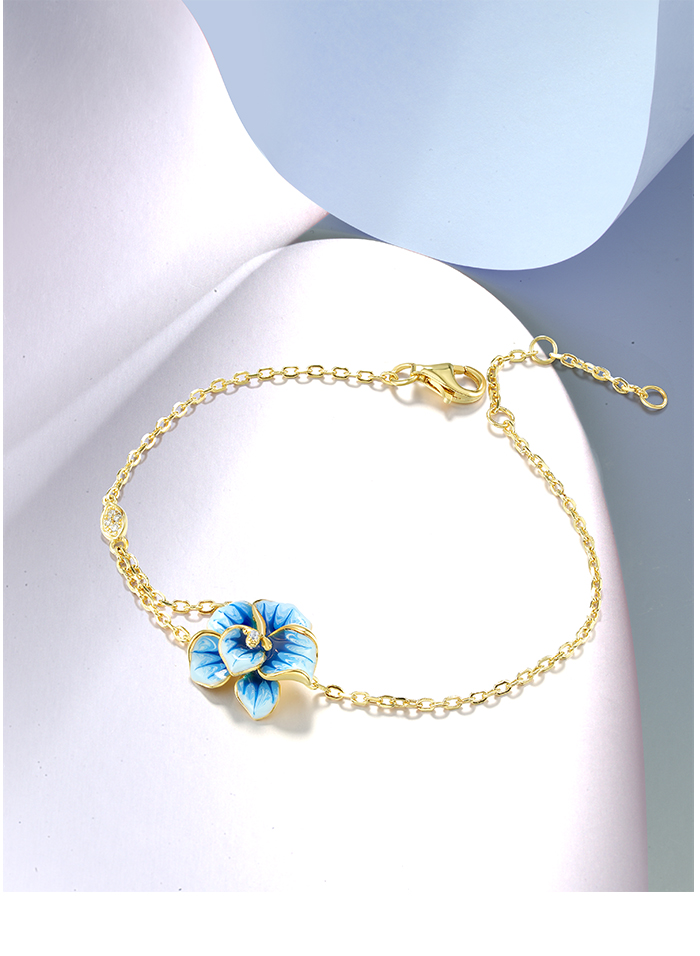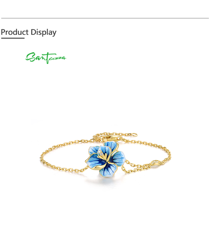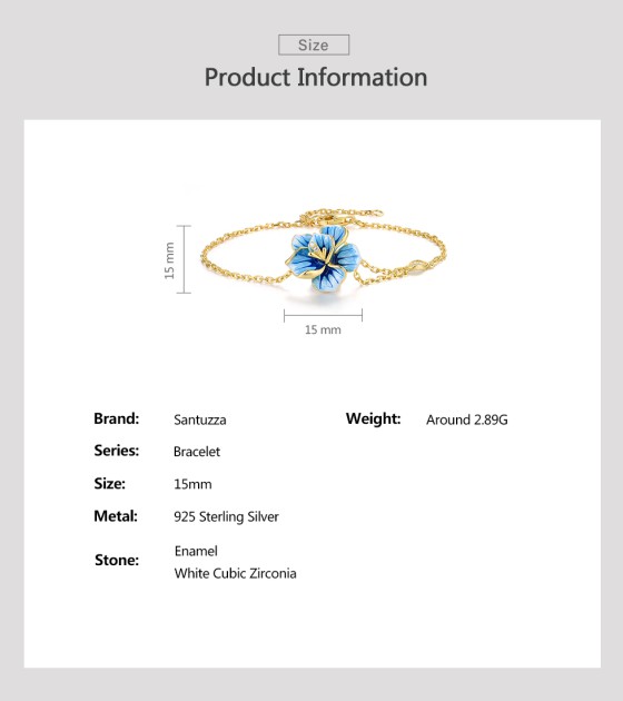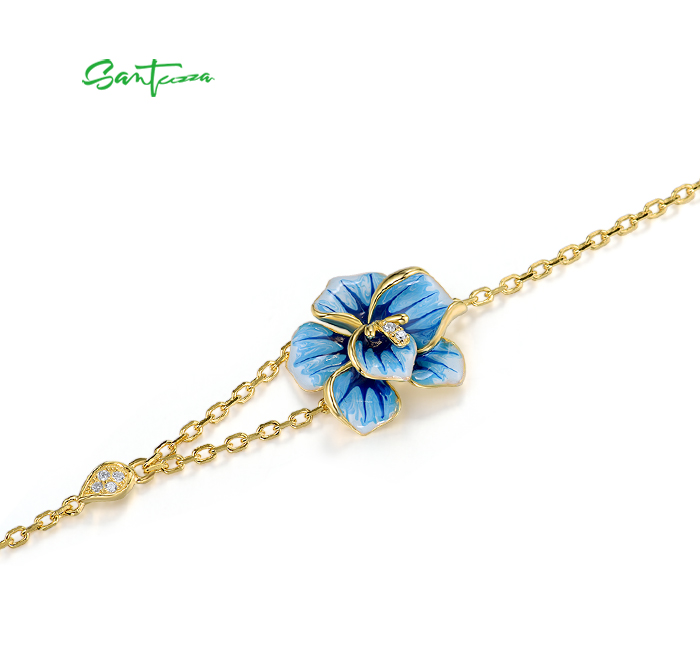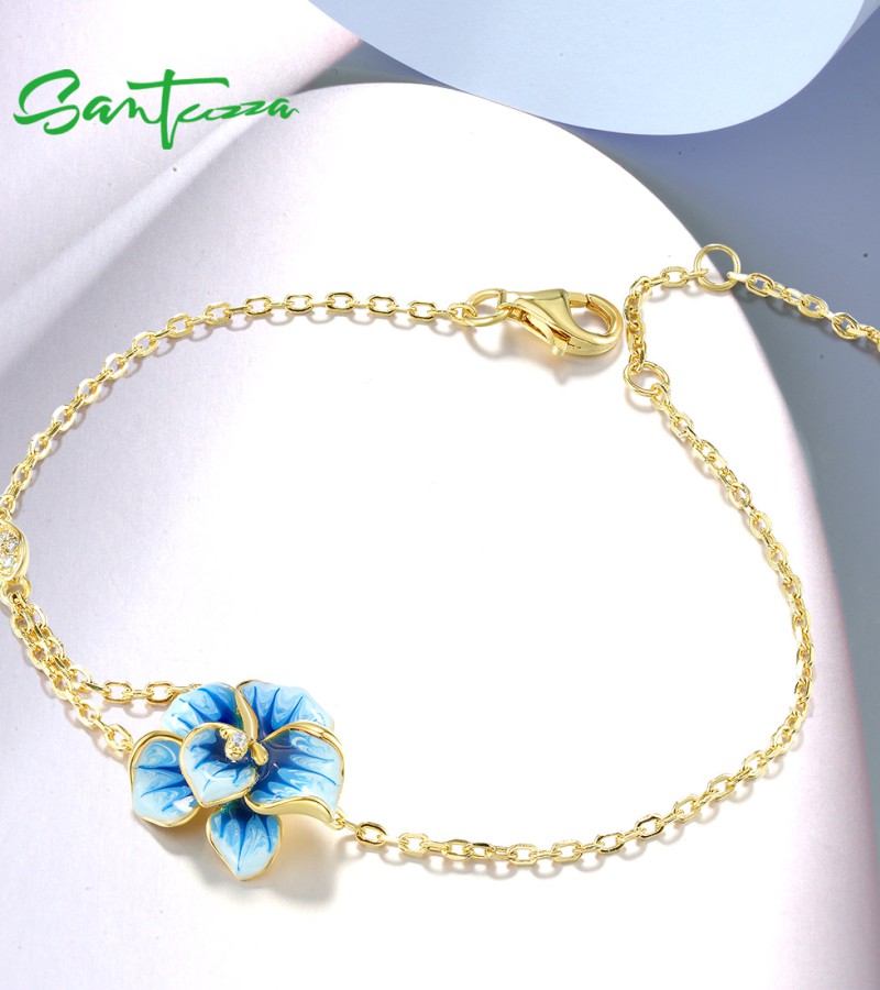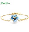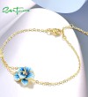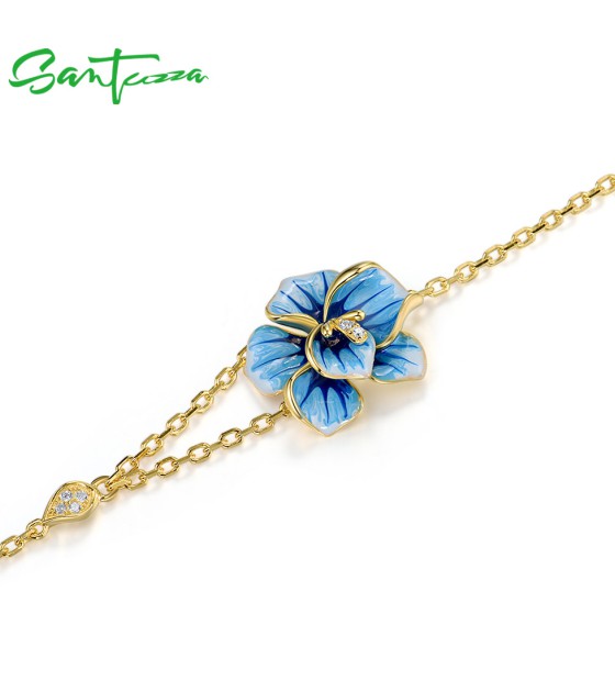 SANTUZZA 925 Sterling Silver Adjustable Bracelet Blue Enamel Flower Jewelry