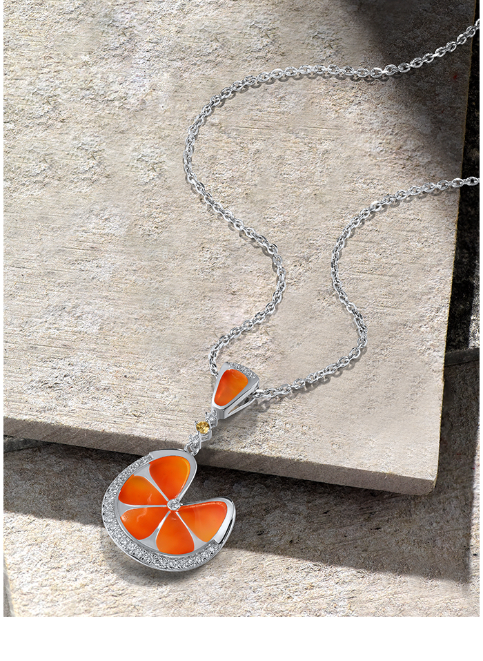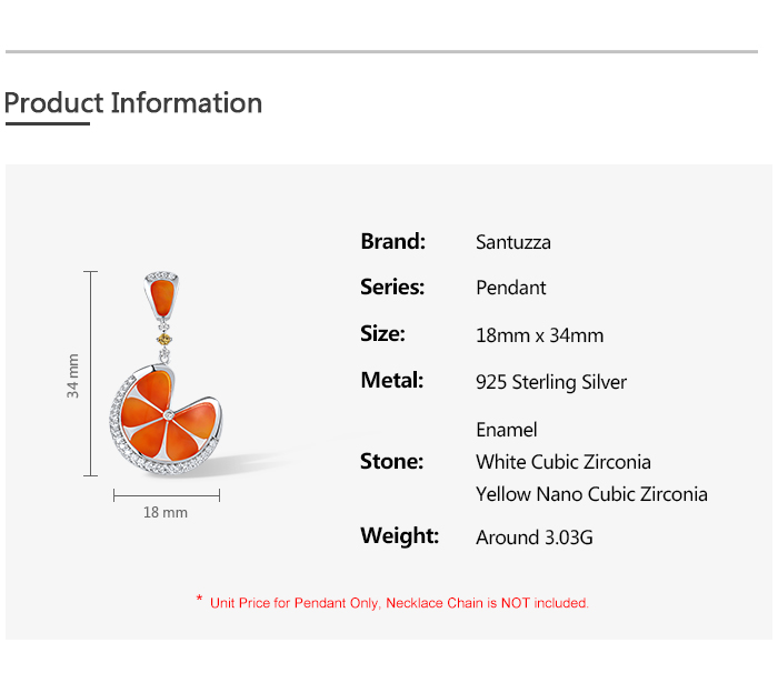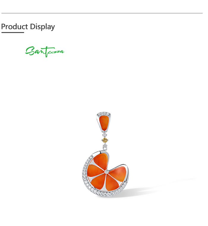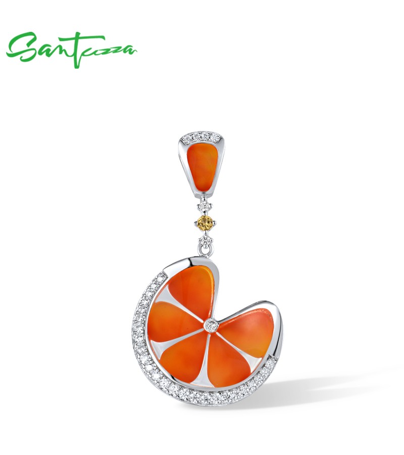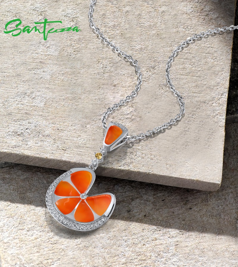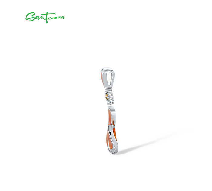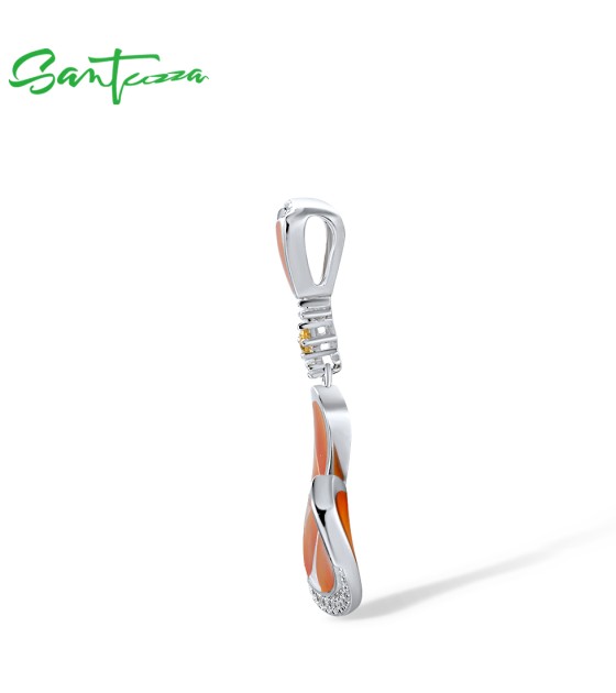 SANTUZZA 925 Sterling Silver Pendant For Women Sparkling White CZ Orange Enamel Leaf Fine Jewelry