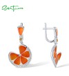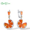 SANTUZZA 925 Sterling Silver Earrings For Women Sparkling Orange Enamel Leaf Fine Jewelry