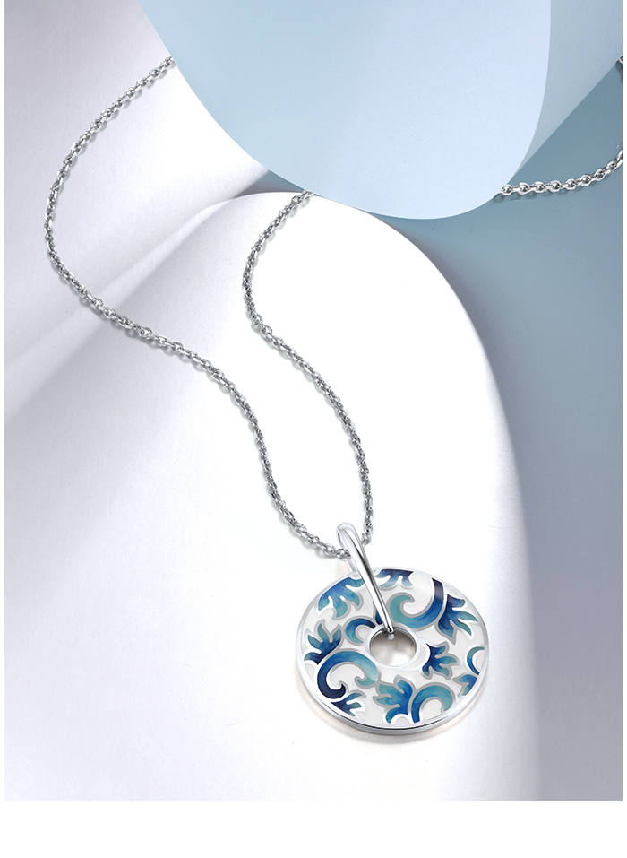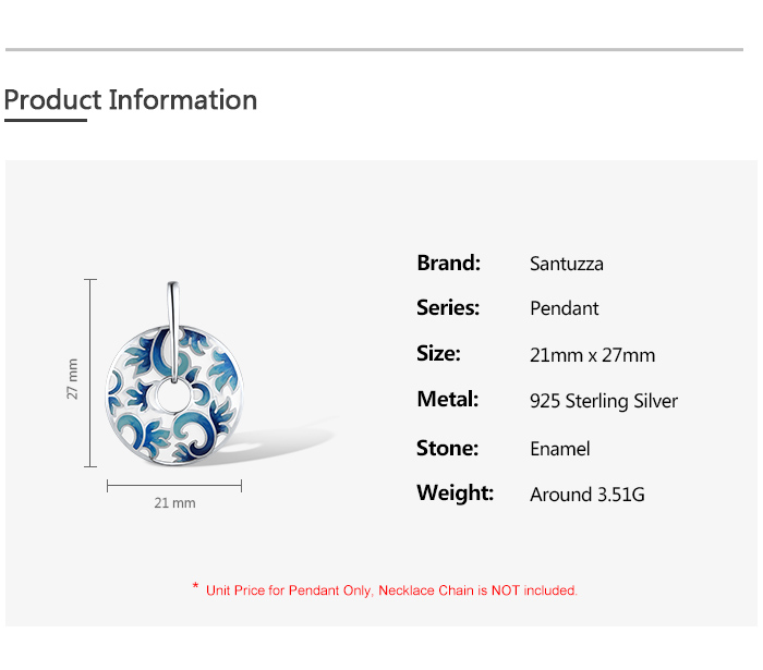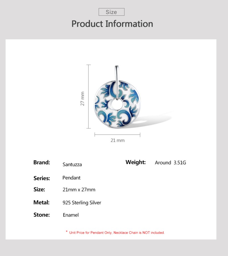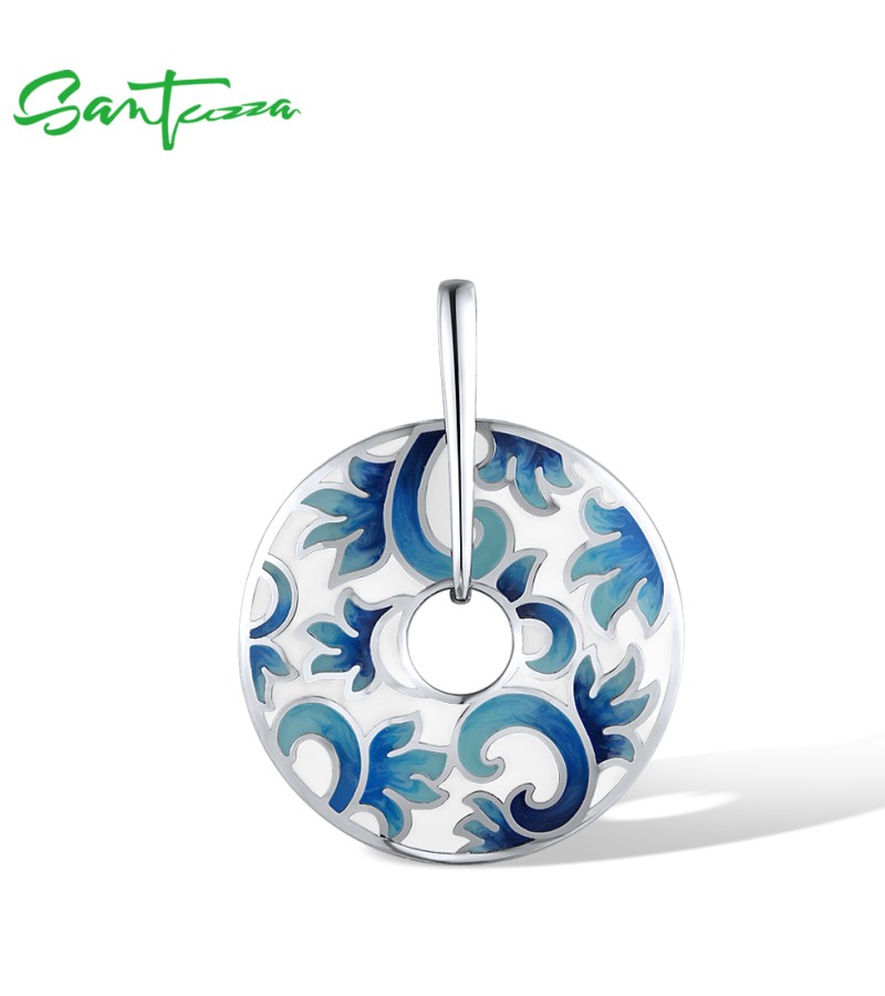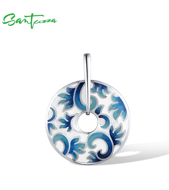 SANTUZZA 925 Sterling Silver Pendant Enamel Round Jewelry