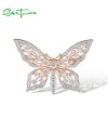 SANTUZZA 925 Silver Brooch White Cubic Zirconia Butterfly Wedding Jewelry