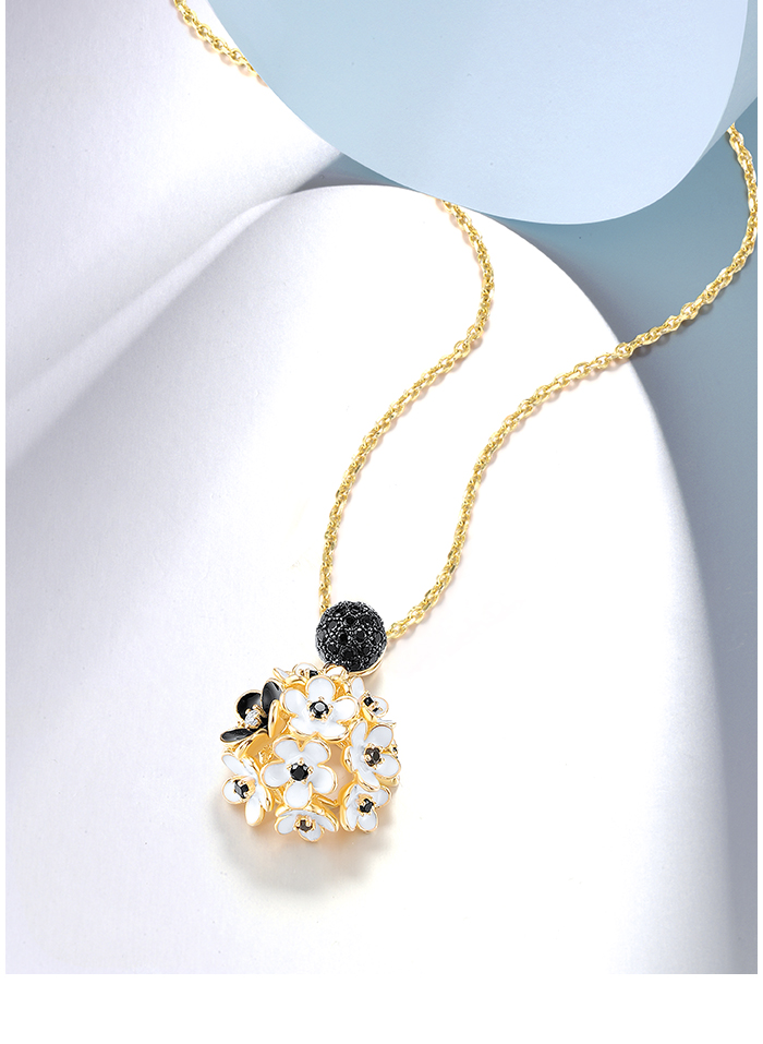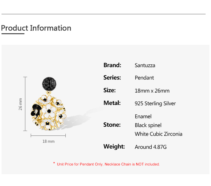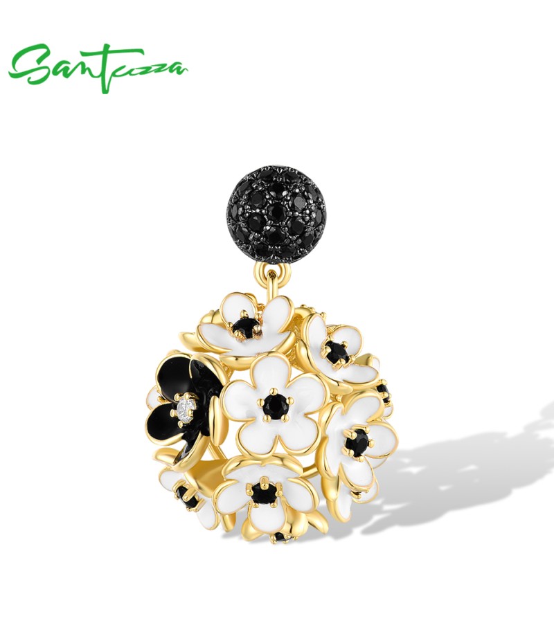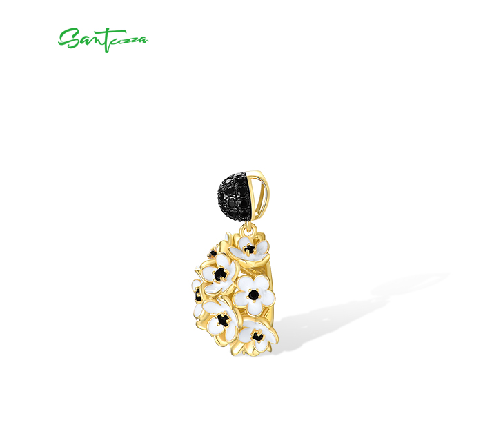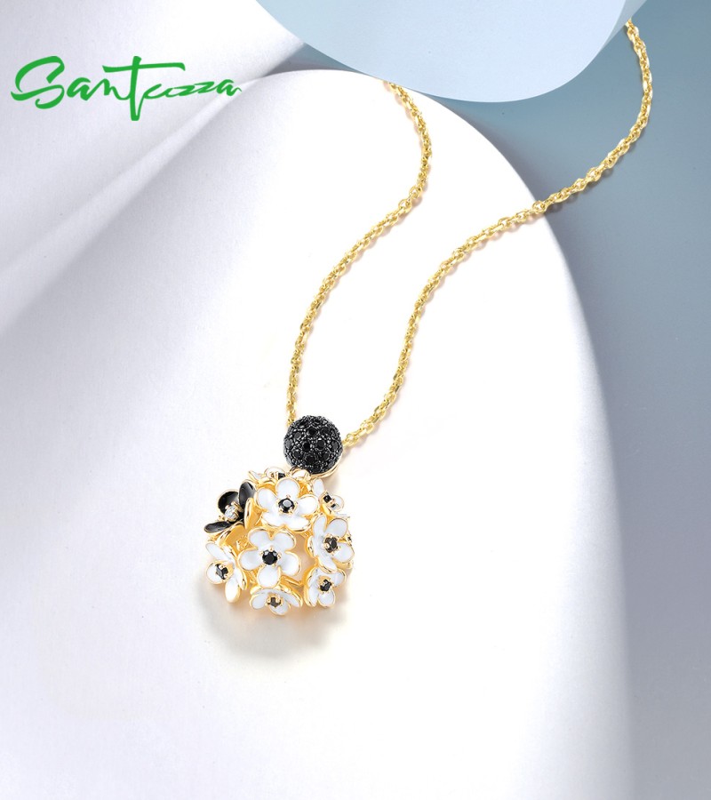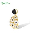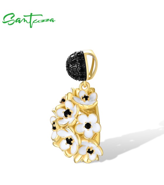 SANTUZZA 925 Sterling Silver Pendant White Black Hollow Cluster Flower Jewelry