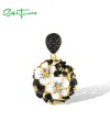 SANTUZZA 925 Sterling Silver Pendant White Black Cluster Enamel Flower Jewelry