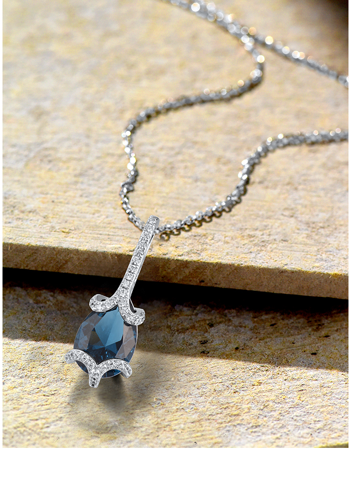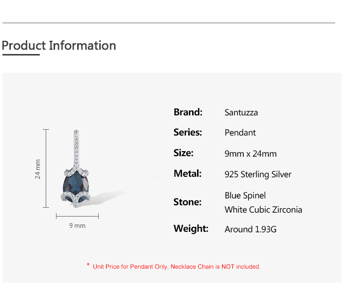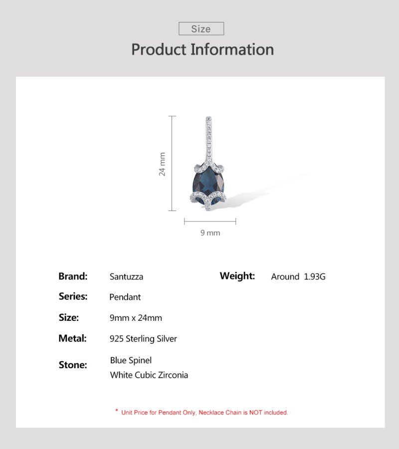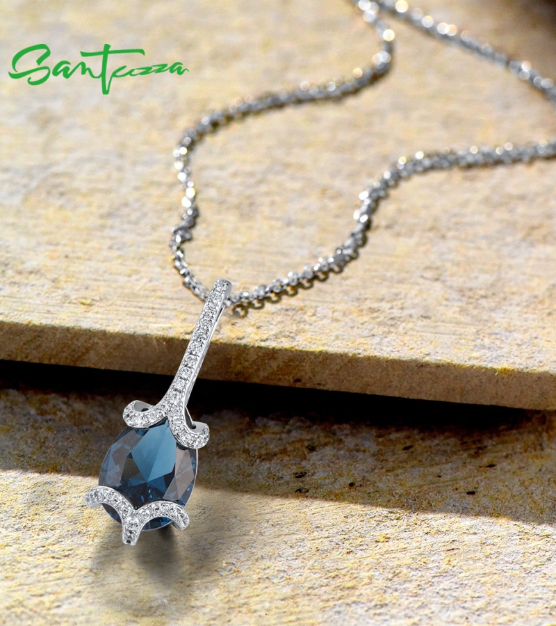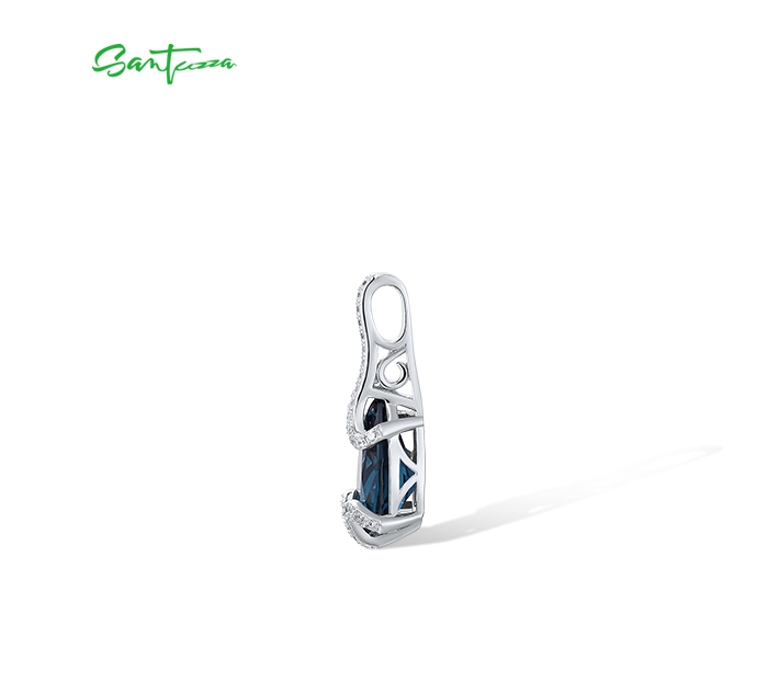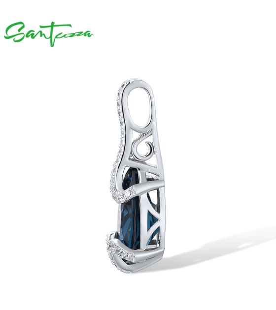 SANTUZZA Authentic 925 Sterling Silver Pendant for Women Blue Spinel White Cubic Zirconia Elegant Party Gifts Fine Jewelry