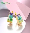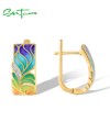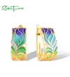 SANTUZZA 925 Sterling Silver Earrings White CZ Colorful Feather Enamel Jewelry
