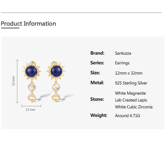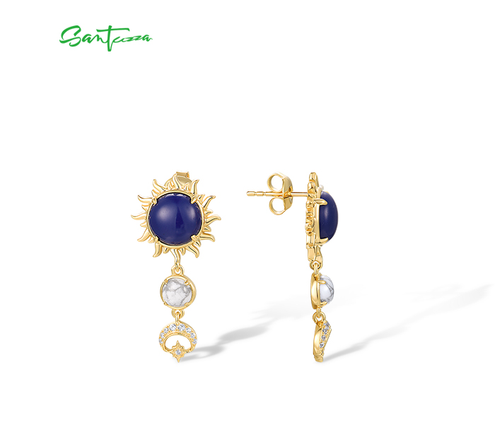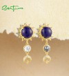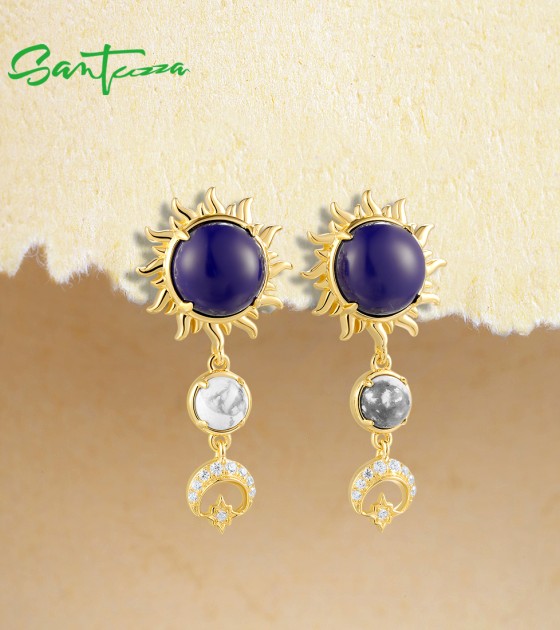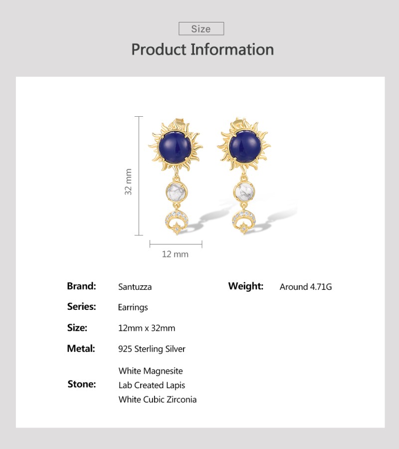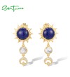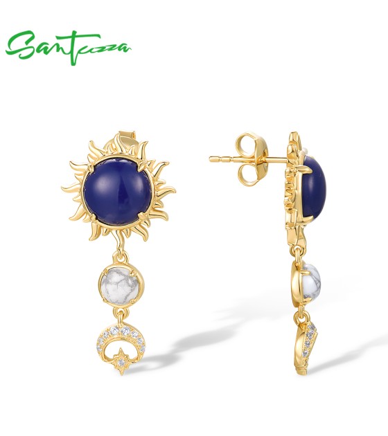SANTUZZA 925 Sterling Silver Drop Earrings Created Lapis White CZ Jewelry