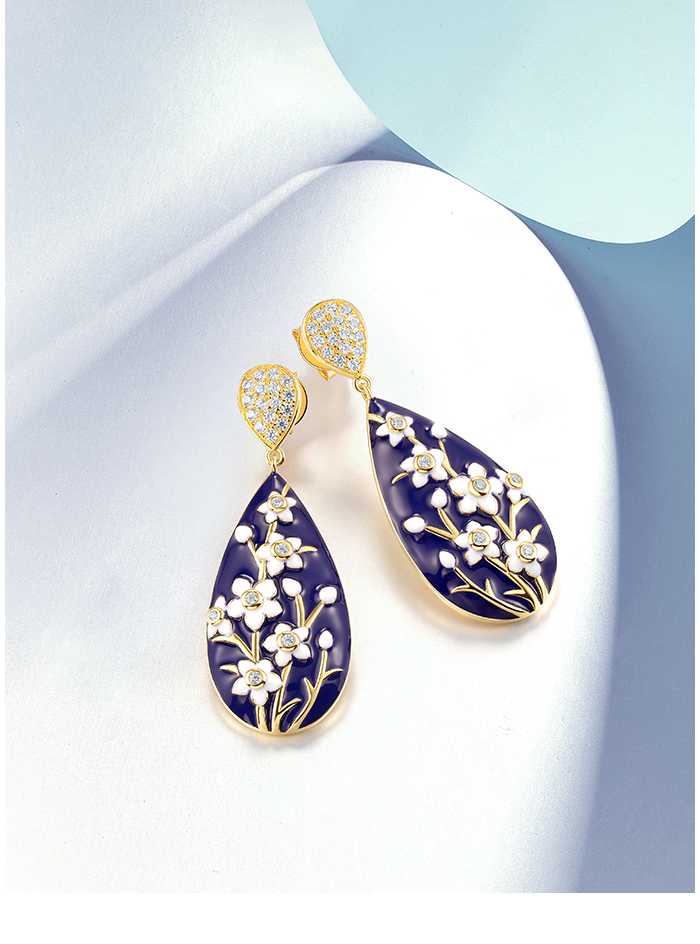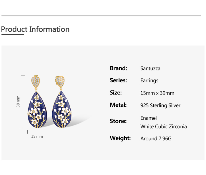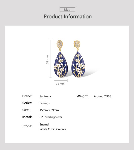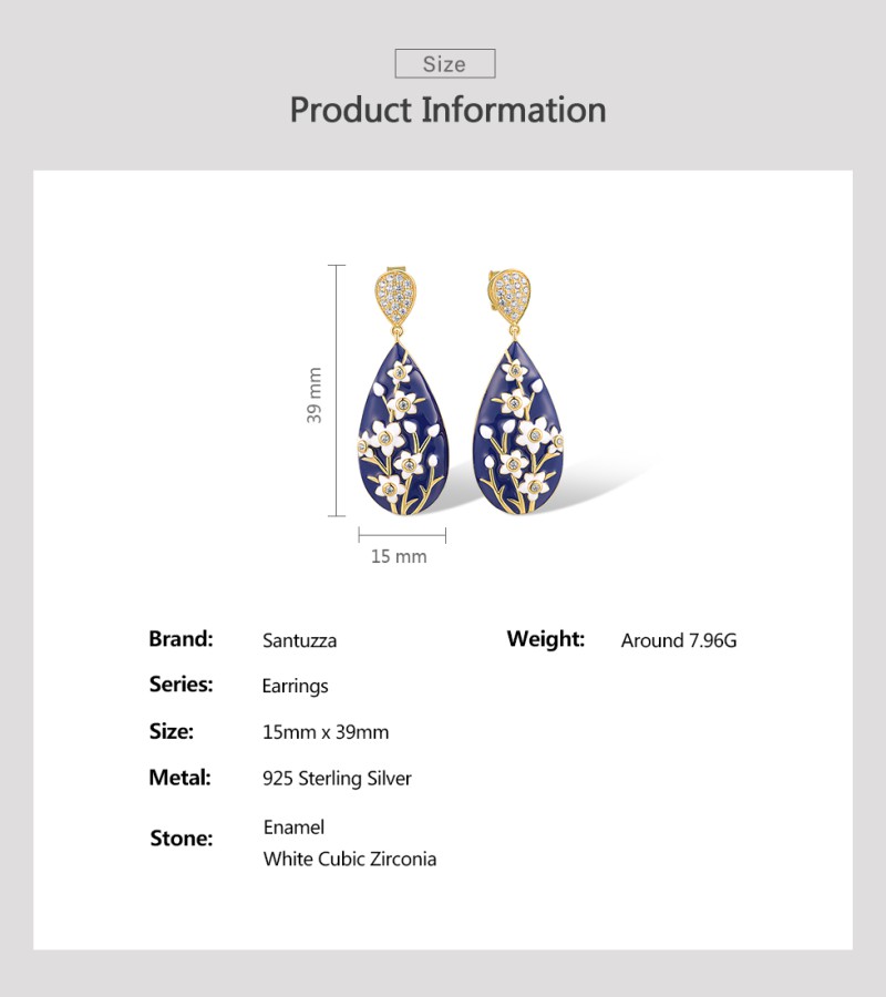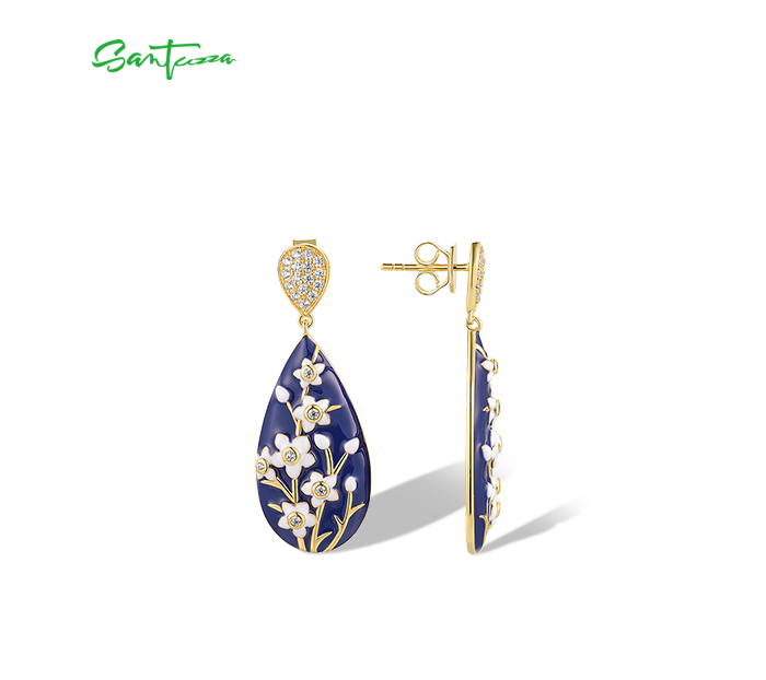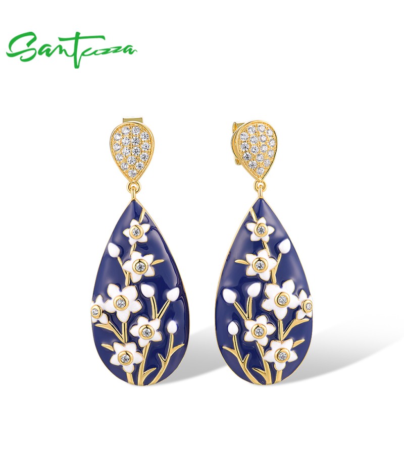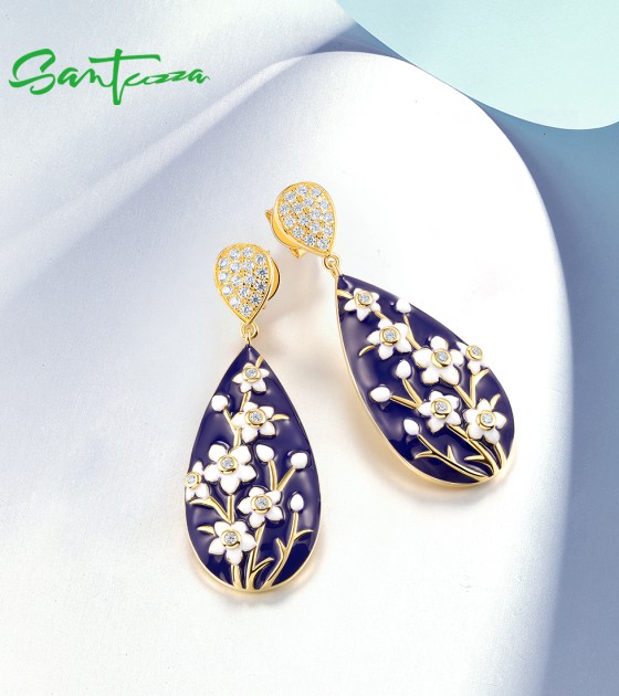 SANTUZZA 925 Sterling Silver Drop Earrings White CZ Flower Enamel Jewelry