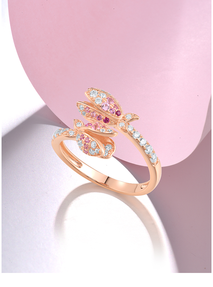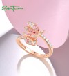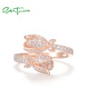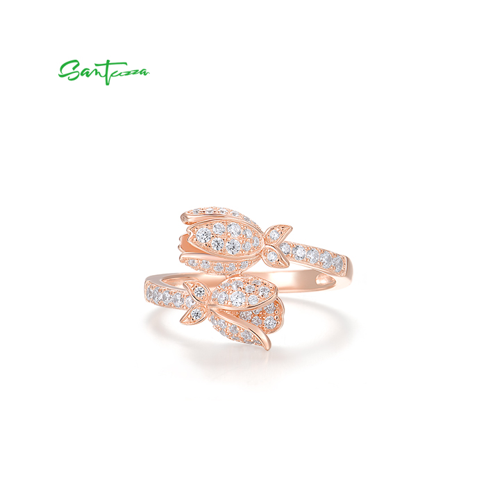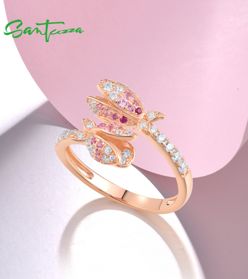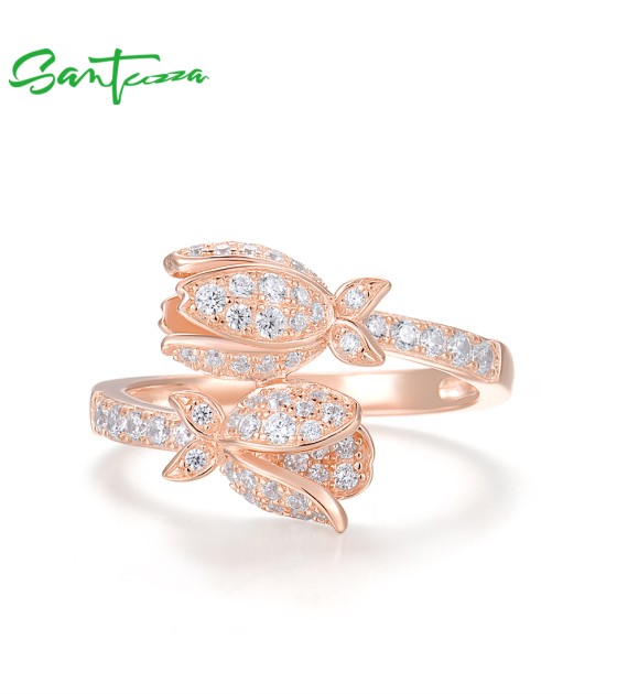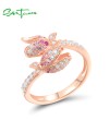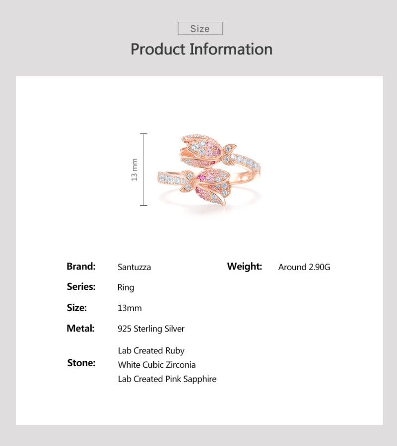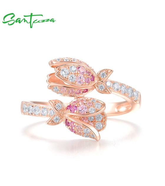 SANTUZZA 925 Sterling Silver Rings White CZ Created Ruby Pink Sapphire Flower Jewelry