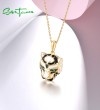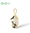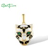 SANTUZZA 925 Sterling Silver Black&White Leopard Pendant Green Spinel Jewelry Enamel