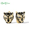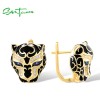 SANTUZZA 925 Sterling Silver Black Leopard Earrings Green Spinel Enamel Fine Jewelry