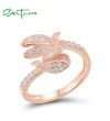 SANTUZZA 925 Sterling Silver Rings White CZ Created Ruby Pink Sapphire Flower Jewelry
