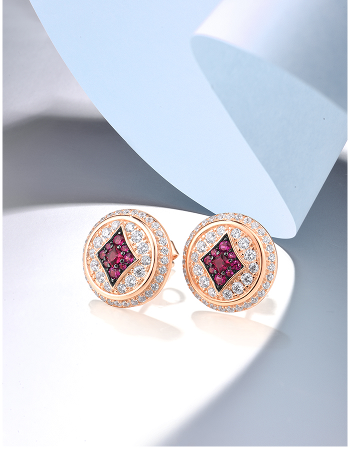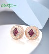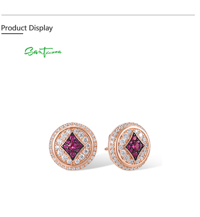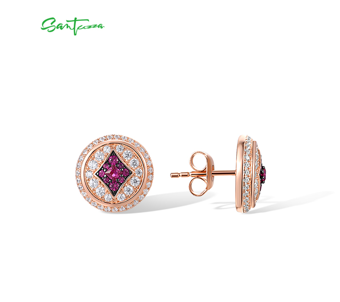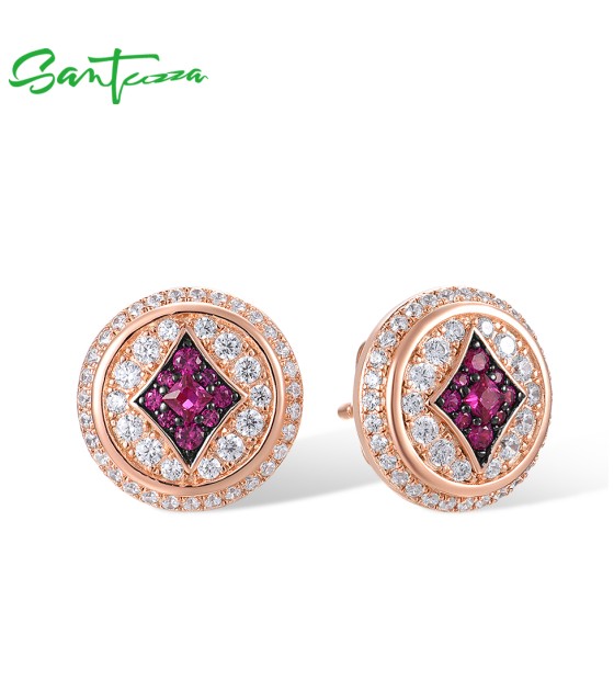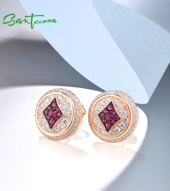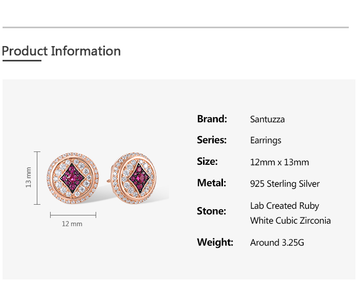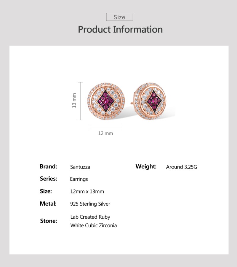SANTUZZA 925 Sterling Silver Earrings Studs White CZ Created Ruby Jewelry