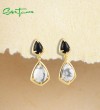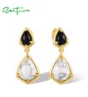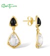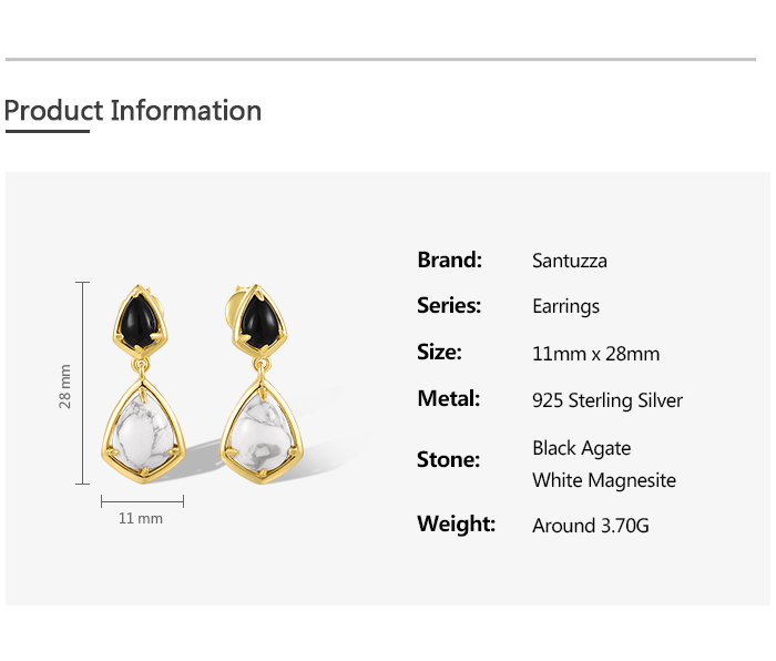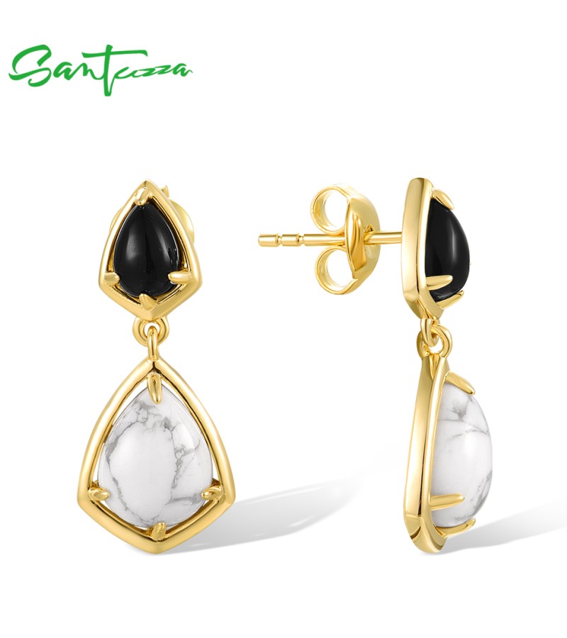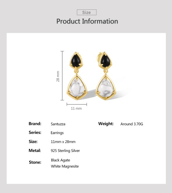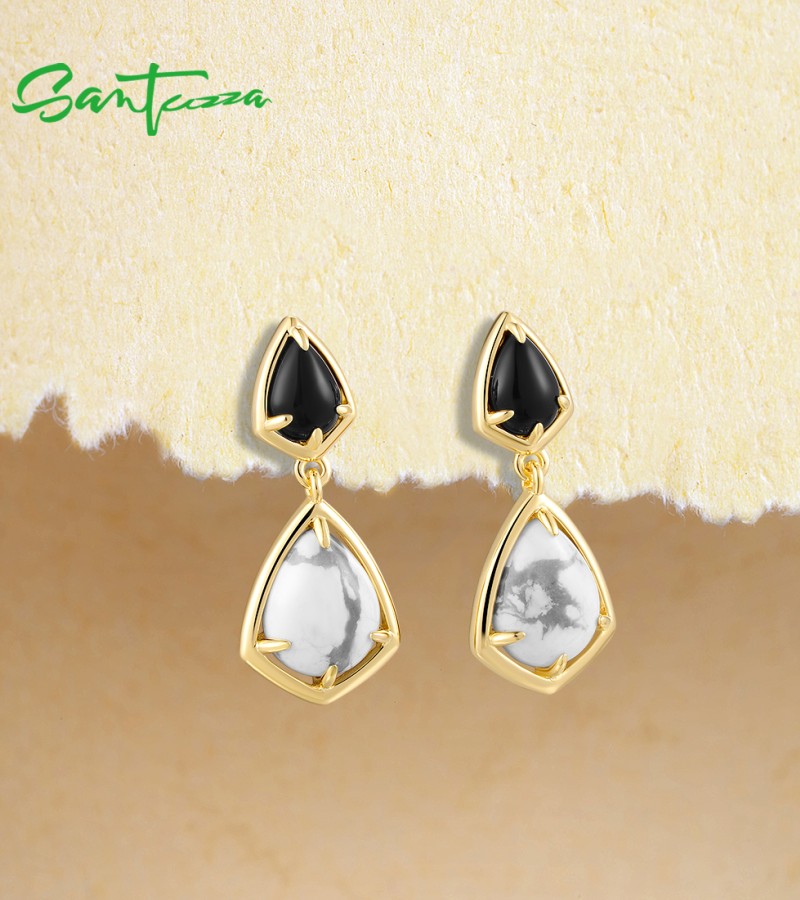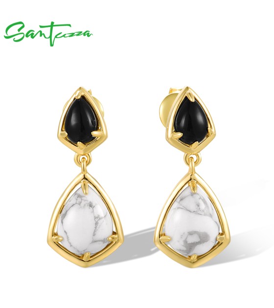 SANTUZZA 925 Sterling Silver Drop Earrings Black Agate White Magnesite Jewelry
