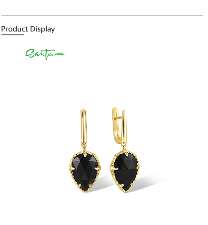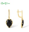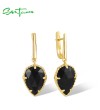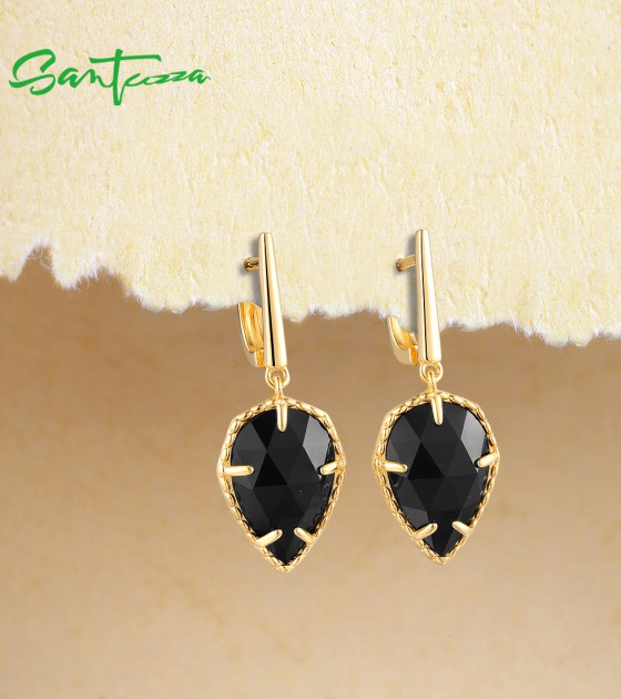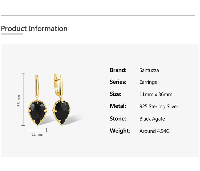 SANTUZZA 925 Sterling Silver Dangling Earrings Black Agate Jewelry