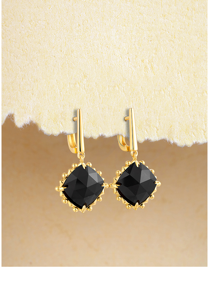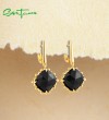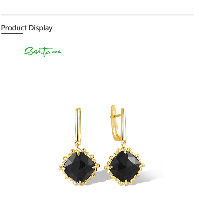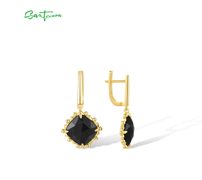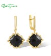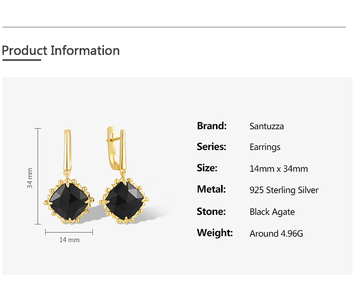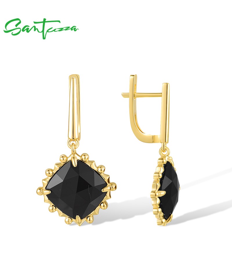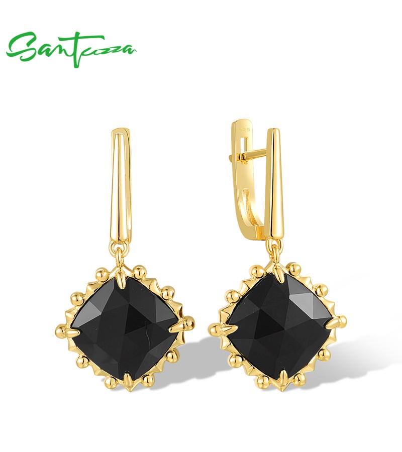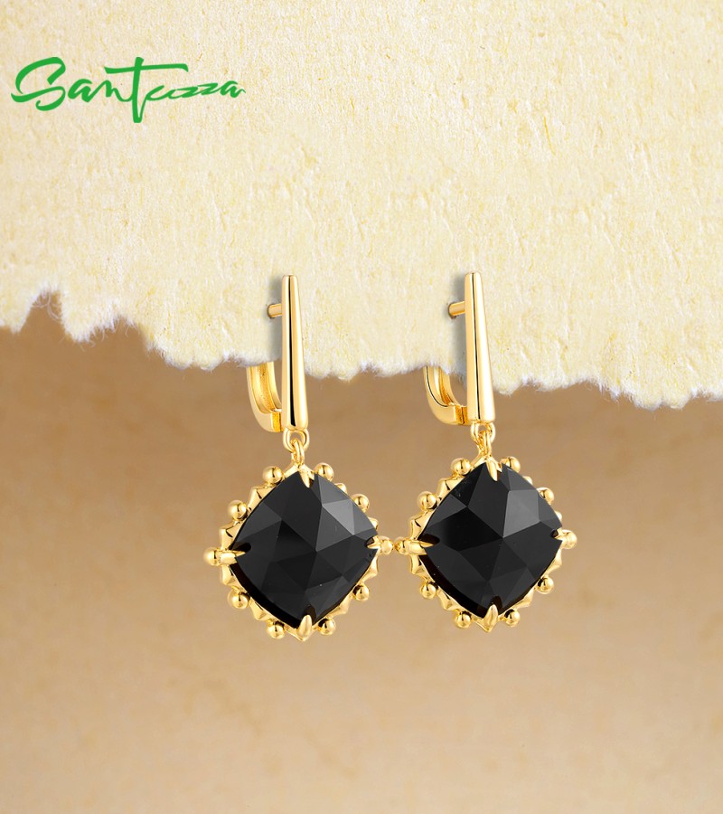 SANTUZZA 925 Sterling Silver Drop Earrings For Women Shiny Square Black Agate Jewelry